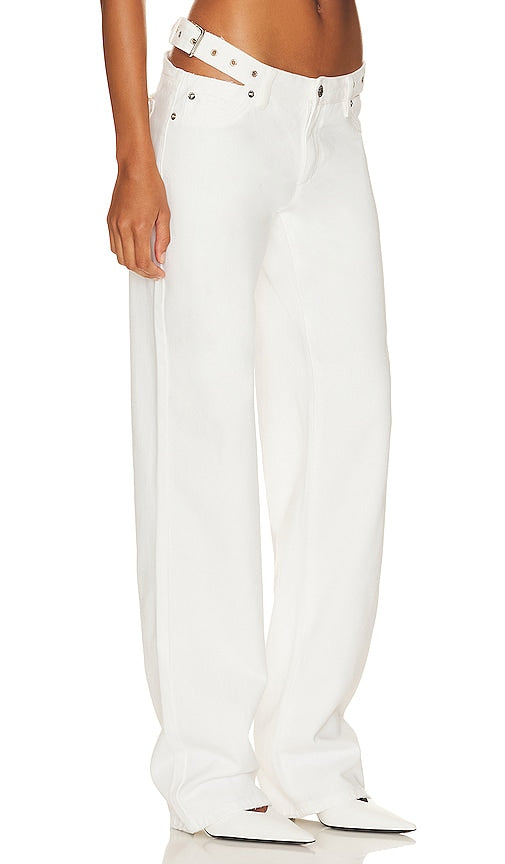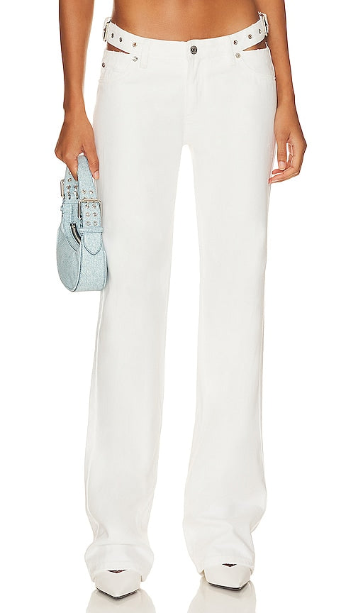 SER.O.YA Christy Jean in White. - size 30 (also in 31) SER.O.YA Christy Jean in White. - size 30 (also in 31) 100% cotton. Made in China. Machine wash. Zip fly with button closure. 5-pocket design. Attached belt detail with cut-outs. Intentionally distressed areas. 15 at the knee and 15 at the leg opening. SERR-WJ29. 3022-14. SER.O.YA is a New York-based contemporary brand with a purpose that transcends fashion. Through a collection of unconstrained, gender-optional designs, SER.O.YA aims to be a vessel for positivity: spreading good energy, encouraging connectivity, and catalyzing social movement. Each drop, SER.O.YA partners with a different organization, with a portion of the proceeds being donated to each charitable cause. We say do you, wear you. Shop the latest in fashion from SER.O.YA