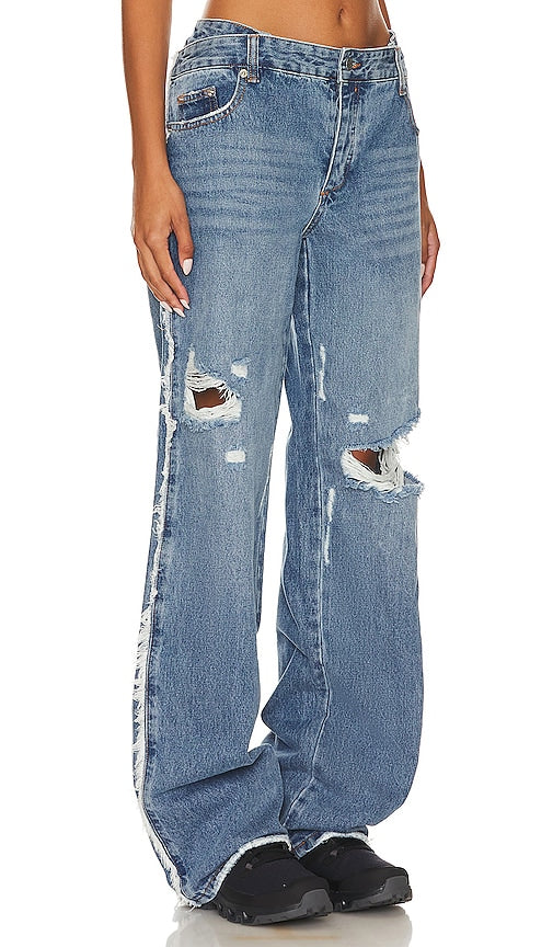 SER.O.YA Roma Jean in Blue. - size 24 (also in 25, 26, 28, 29, 30, 32) SER.O.YA Roma Jean in Blue. - size 24 (also in 25, 26, 28, 29, 30, 32) 100% cotton. Made in China. Machine wash. Button fly. 5-pocket design. Intentionally destroyed areas. Frayed trim Light whiskering and fading detail. 18 at the knee and 18 at the leg opening. SERR-WJ37. 3128-14. SER.O.YA is a New York-based contemporary brand with a purpose that transcends fashion. Through a collection of unconstrained, gender-optional designs, SER.O.YA aims to be a vessel for positivity: spreading good energy, encouraging connectivity, and catalyzing social movement. Each drop, SER.O.YA partners with a different organization, with a portion of the proceeds being donated to each charitable cause. We say do you, wear you. Shop the latest in fashion from SER.O.YA