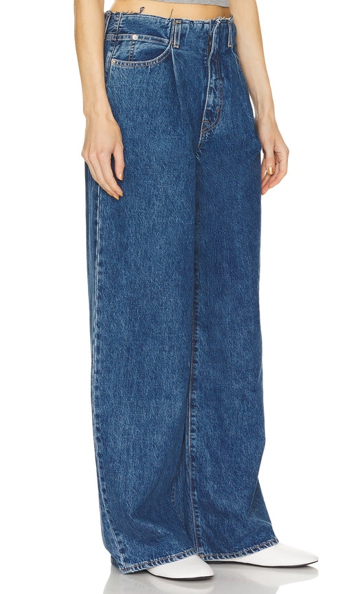 SLVRLAKE Taylor Wide Leg in Blue. - size 25 (also in 26, 27, 28, 29, 30, 31, 32) SLVRLAKE Taylor Wide Leg in Blue. - size 25 (also in 26, 27, 28, 29, 30, 31, 32) 100% cotton. Made in USA. Machine wash. Zip fly with hook and bar closure. 5-pocket design. Frayed raw-cut waist. Front pintuck detail. 22 at the knee breaks to 24 at the leg opening. SLKE-WJ133. TAYJ707S. A line of premium denim that embodies the effortlessly chic Los Angeles vibe, creators Louise Edgley and her husband Gary Edgly founded SLVERLAKE. Drawing inspo from the brands hometown of Los Angeles, they sought to create modern-minimalist essentials that combine vintage washes with a timeless style and flare. Committed to using the highest quality materials, these co-founders are undeniably passionate about creating new looks that are meant to last while constantly challenging the status quo. Shop the latest in fashion from SLVRLAKE
