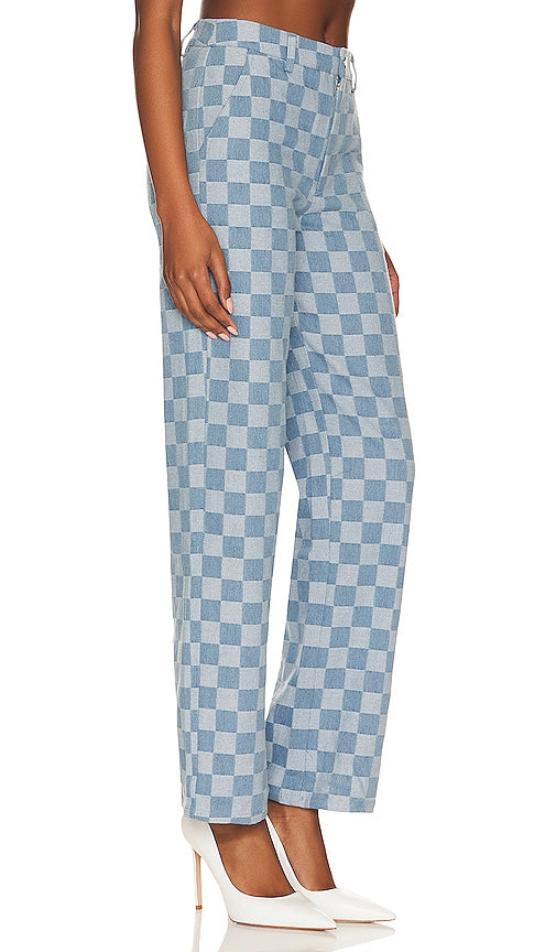 superdown Jules Checkered Jean in Blue - superdown Jean à carreaux Jules en bleu - superdown Jules 蓝色格纹牛仔裤 - Superdown Jules Karierte Jeans in Blau - superdown Jules 체크 진 블루 색상 - superdown Jules Jeans a quadri in blu