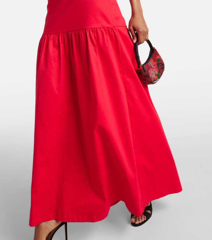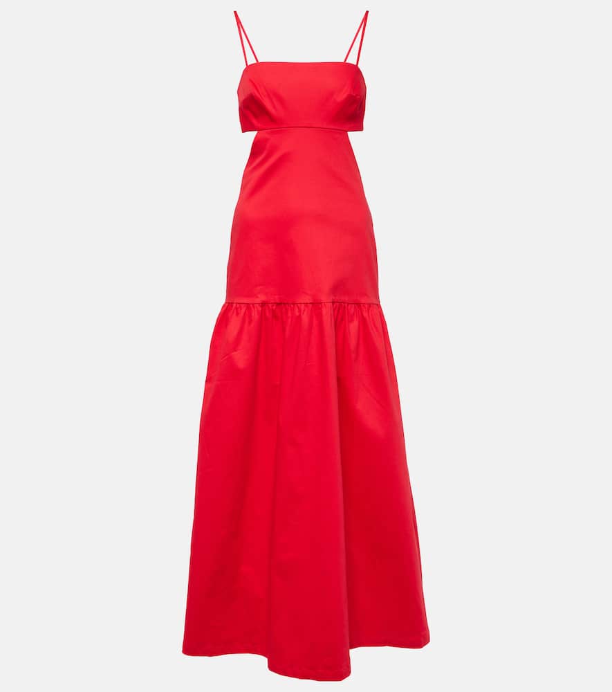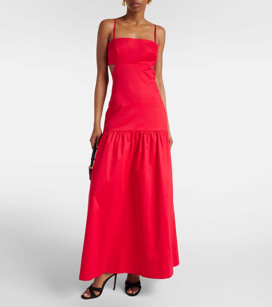 Material: 97% cotton, 3% elastane. Care instructions: hand wash. Made in Italy. Designer color name: Red. Closure: snap-buttoned back, invisible zipper. Lining: 100% cotton. Shop the latest Adriana Degreas Maxi Dresses for women.