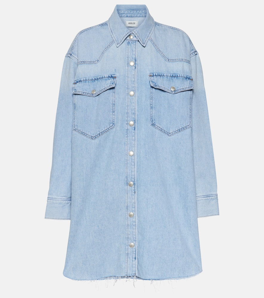 Material: 100% cotton (organic). Care instructions: machine wash cold. Made in Turkey. Designer color name: Flush. Closure: snap-buttoned front. Pockets: snap-buttoned pockets. Shop the latest Agolde Mini Dresses for women.