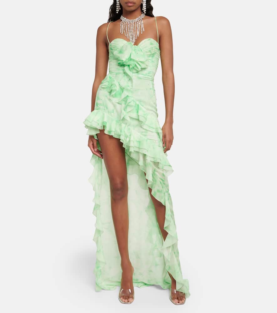 Lining: 100% silk. Made in Italy. Closure: zipped side. Designer color name: Neon Green. Material: 100% silk. Embroidery: 100% glass. Care instructions: specialist clean. Shop the latest Alessandra Rich Maxi Dresses for women.
