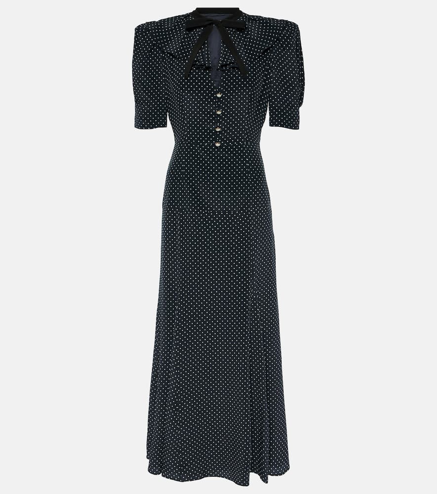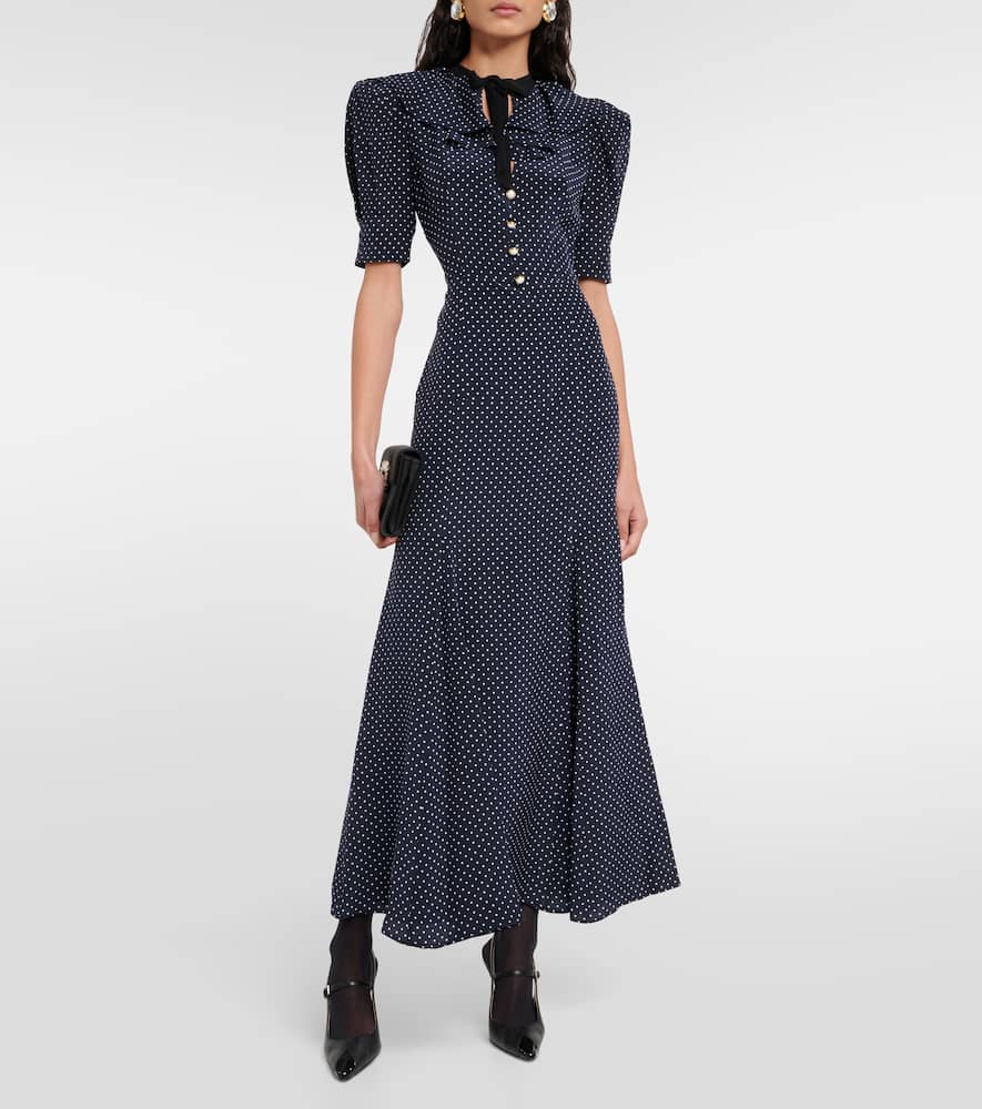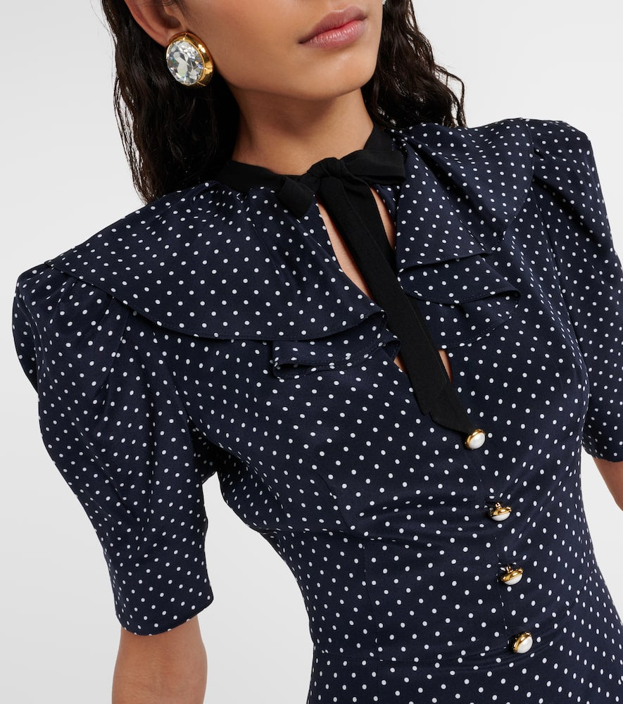 Alessandra Rich Polka-dot puff-sleeve silk midi dress