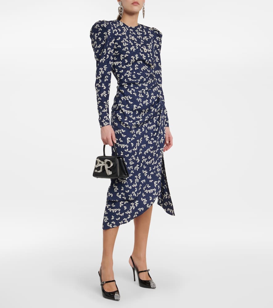 Made in Italy. Closure: partially buttoned front, invisible zipper. Material: 100% silk. Designer color name: Navy Blue. Lining: 100% cupro, partially lined. Self-tie belt. Care instructions: dry clean. Lining II: 100% polyamide. Shop the latest Alessandra Rich Midi Dresses for women.