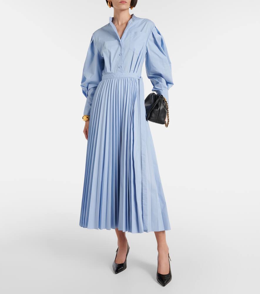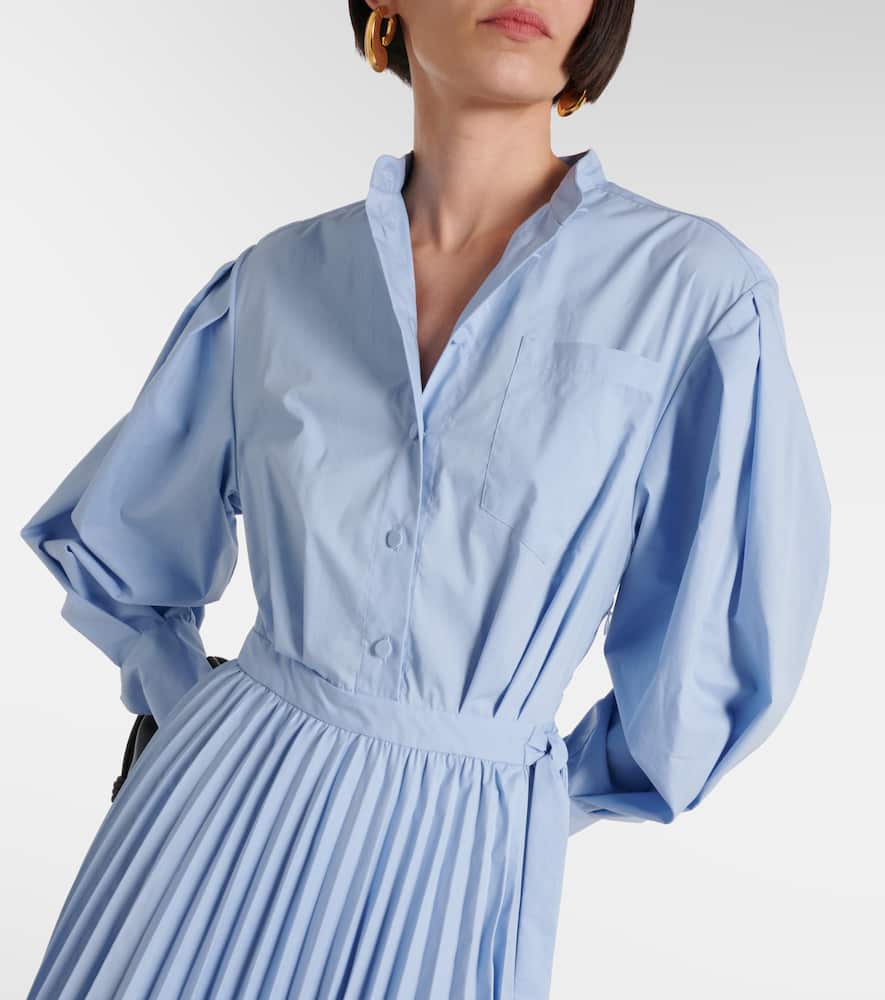 Material: 70% cotton, 30% polyester. Care instructions: dry clean. Made in Italy. Designer color name: Danube. Closure: partially buttoned front. Attached belt. Shop the latest Altuzarra Midi Dresses for women.