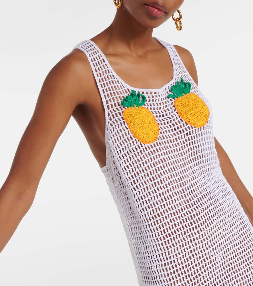 Anna Kosturova Pineapple Mesh fringed crochet cotton minidress