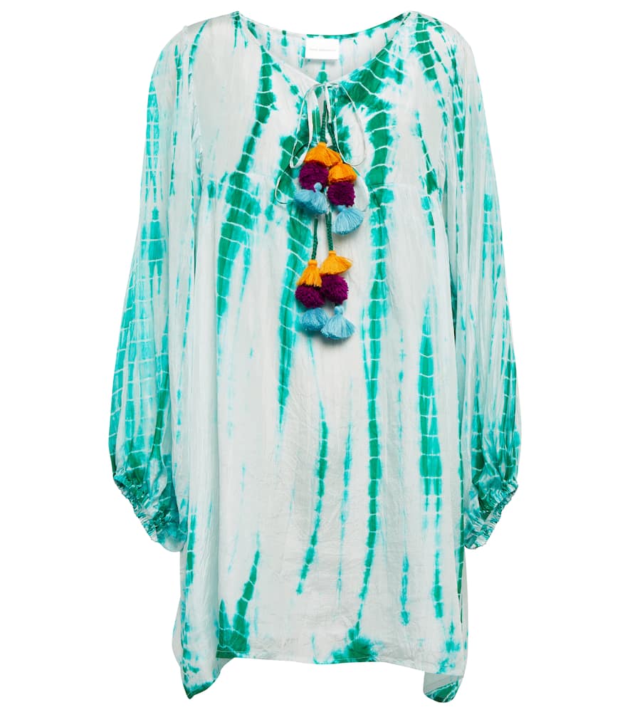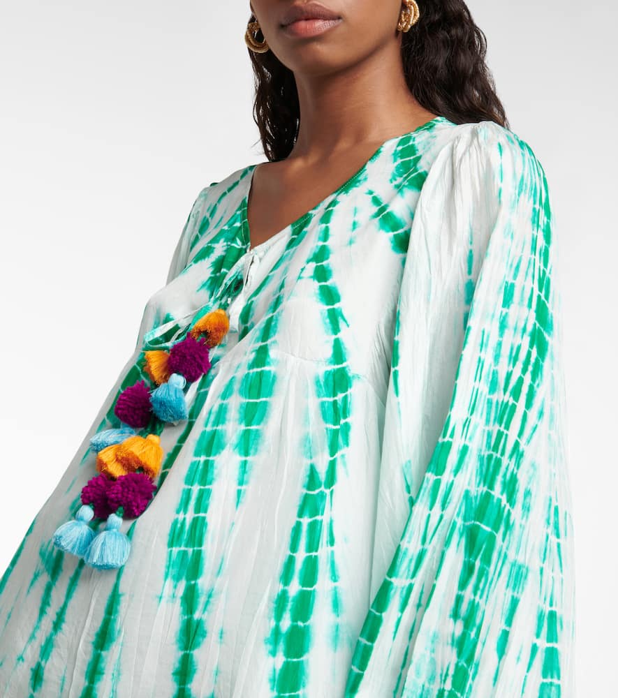 Pockets: side slit pockets. Lining: partially lined. Material: 100% silk. Designer color name: Emr/ Wht. Care instructions: dry clean. Elasticated cuffs. Made in India. Shop the latest Anna Kosturova Mini Dresses for women.
