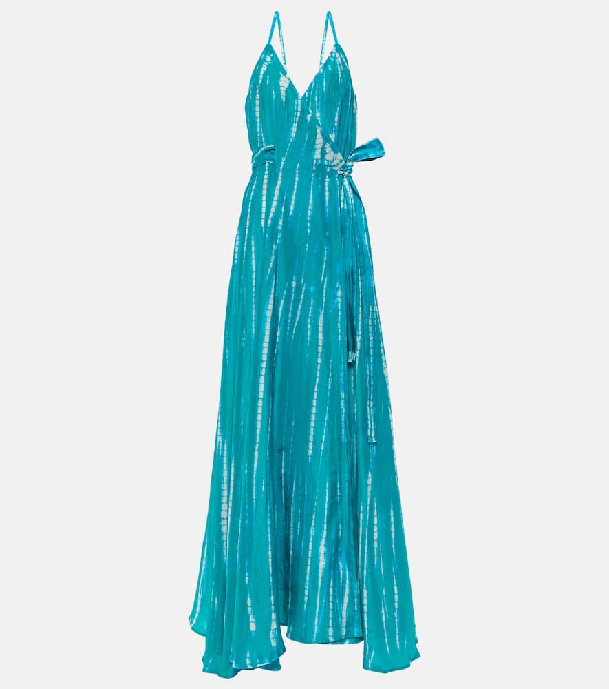 Material: 100% silk. Care instructions: dry clean. Made in India. Designer color name: Emerald. Adjustable shoulder straps. Closure: self-ties. Shop the latest Anna Kosturova Maxi Dresses for women.