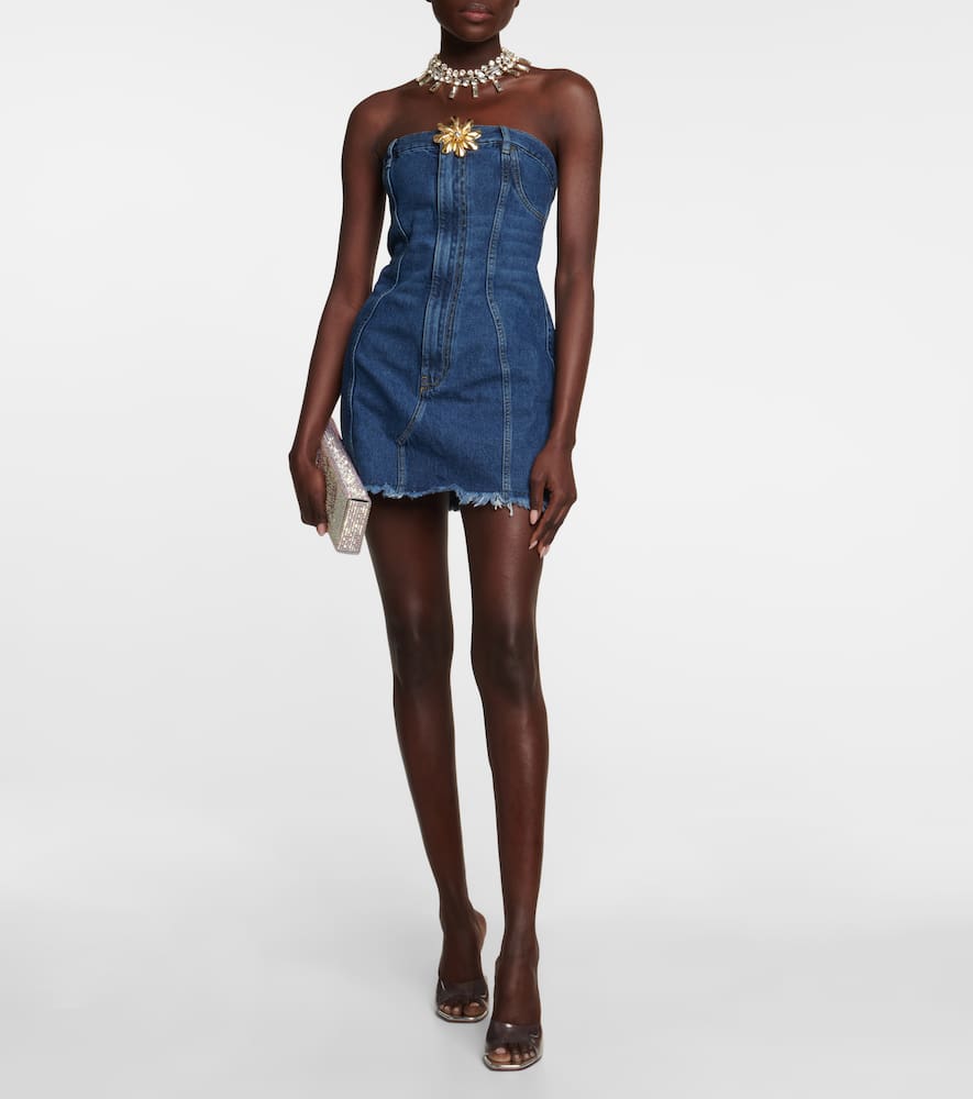 Closure: zipper, hook fastening. Care instructions: dry clean. Material: 100% cotton. Designer color name: Light Blue. Made in Turkey. Shop the latest Area Mini Dresses for women.