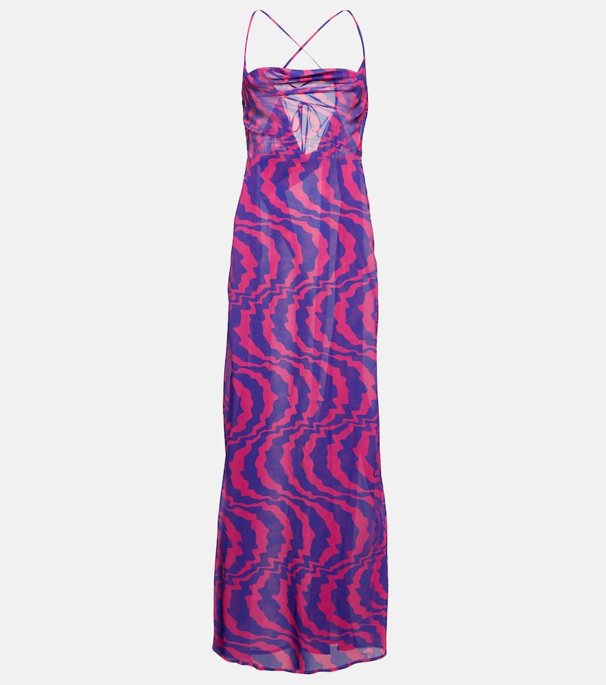 Material: 100% polyester. Care instructions: hand wash. Made in Thailand. Designer color name: Purple Wave. Closure: self-ties. Shop the latest Bananhot Maxi Dresses for women.