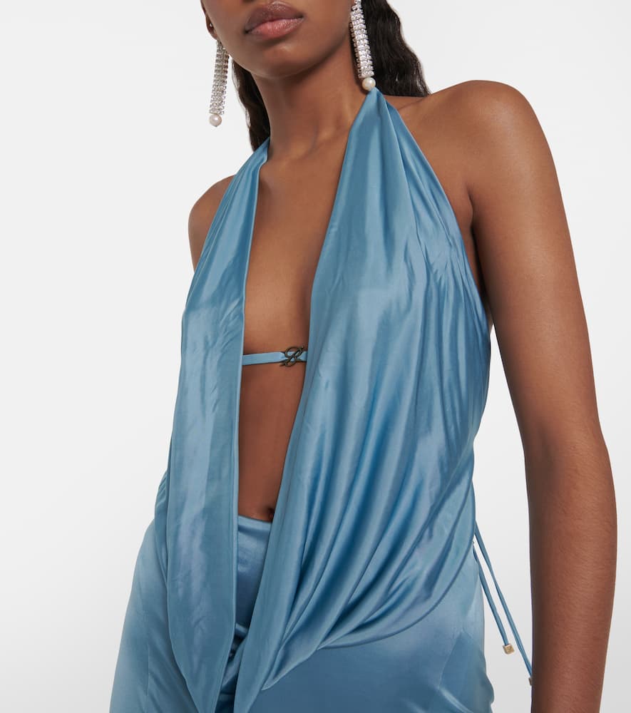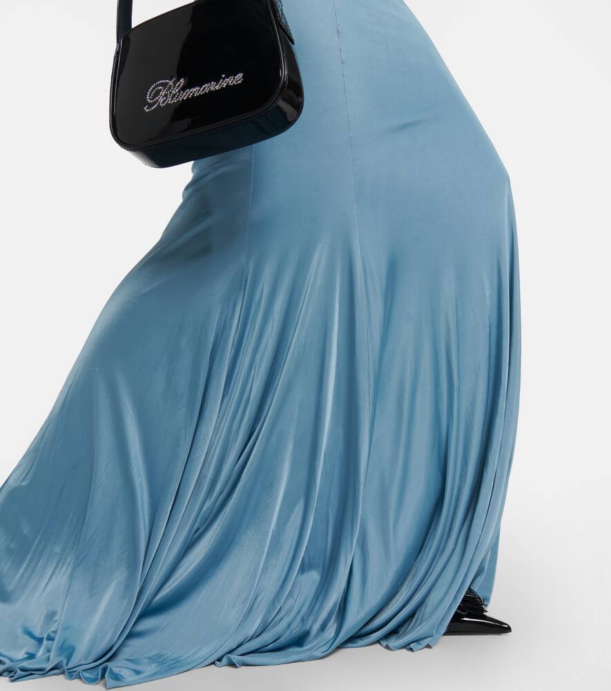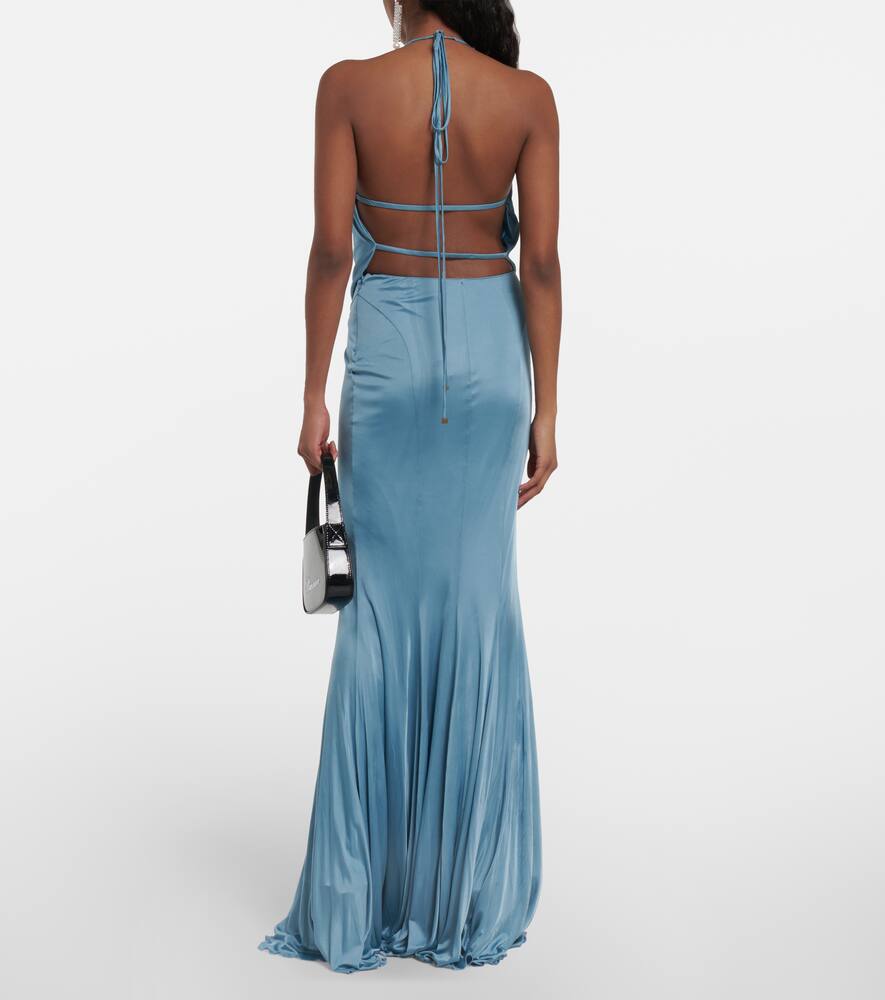 Lining: 73% polyamide, fully lined, 27% elastane. Made in Italy. Self-tie neck. Designer color name: Agata. Material: 100% viscose. Closure: invisible zipper. Care instructions: dry clean. Shop the latest Blumarine Maxi Dresses for women.