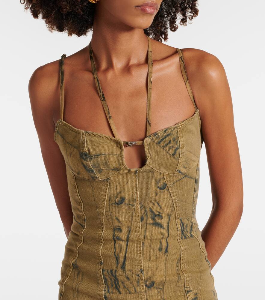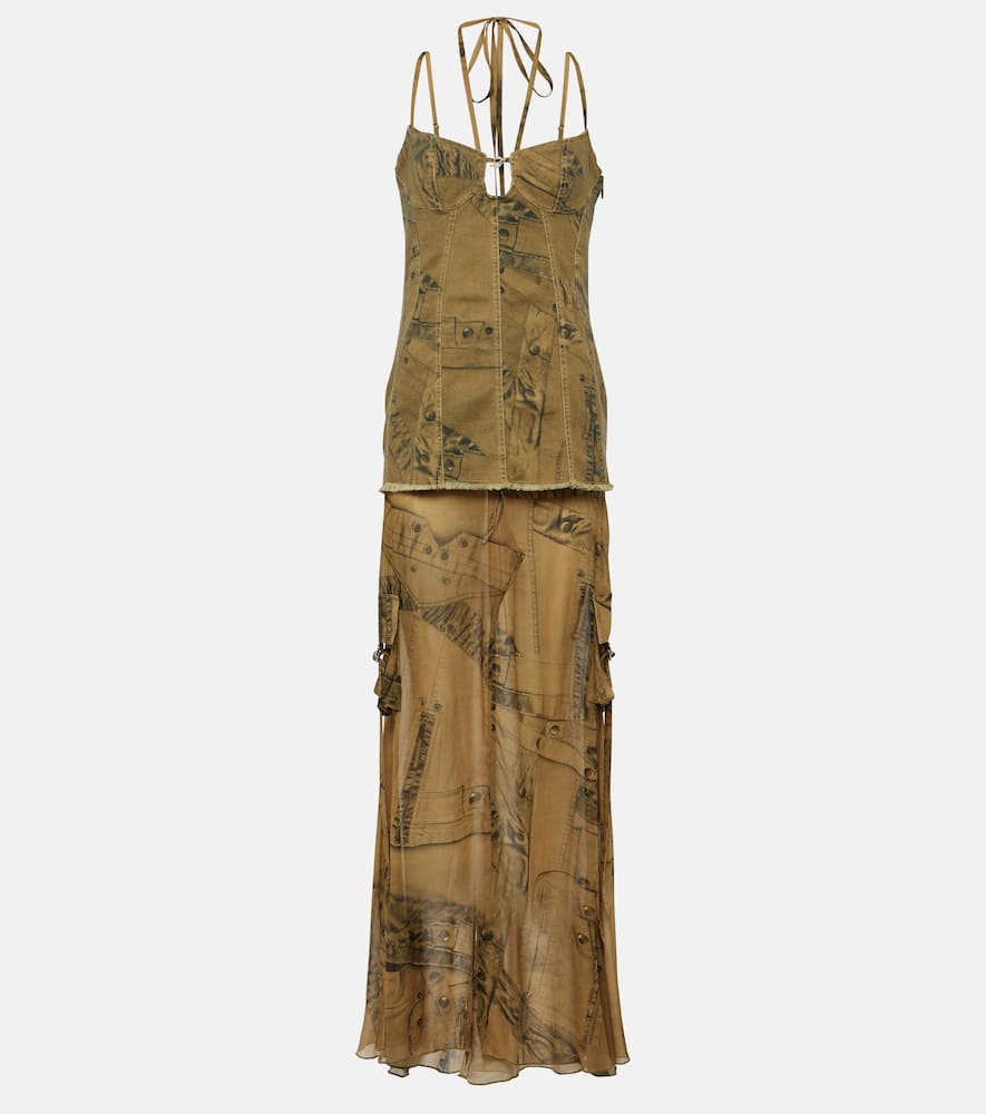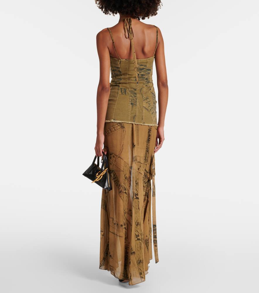 Material: 100% viscose. Care instructions: machine wash at 30 degrees. Made in Albania. Designer color name: Taupe Grey/Nero. Material II: 98% cotton, 2% elastane. Closure: zipper, hook fastening. Adjustable shoulder straps. Shop the latest Blumarine Maxi Dresses for women.