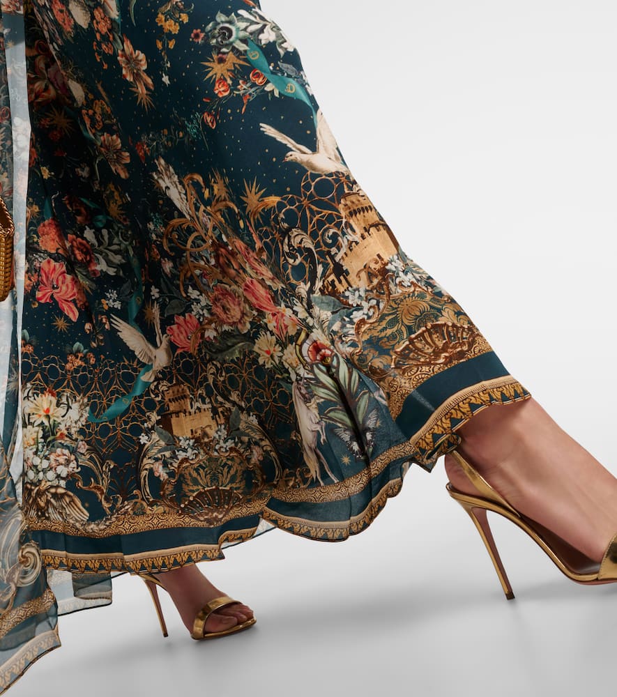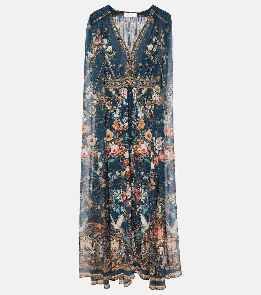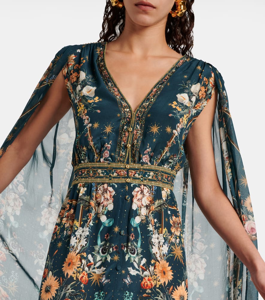 Material: 100% silk. Care instructions: do not wash. Made in India. Designer color name: Shewhow. Collar: V-neck. Closure: buttoned front. Shop the latest Camilla Maxi Dresses for women.
