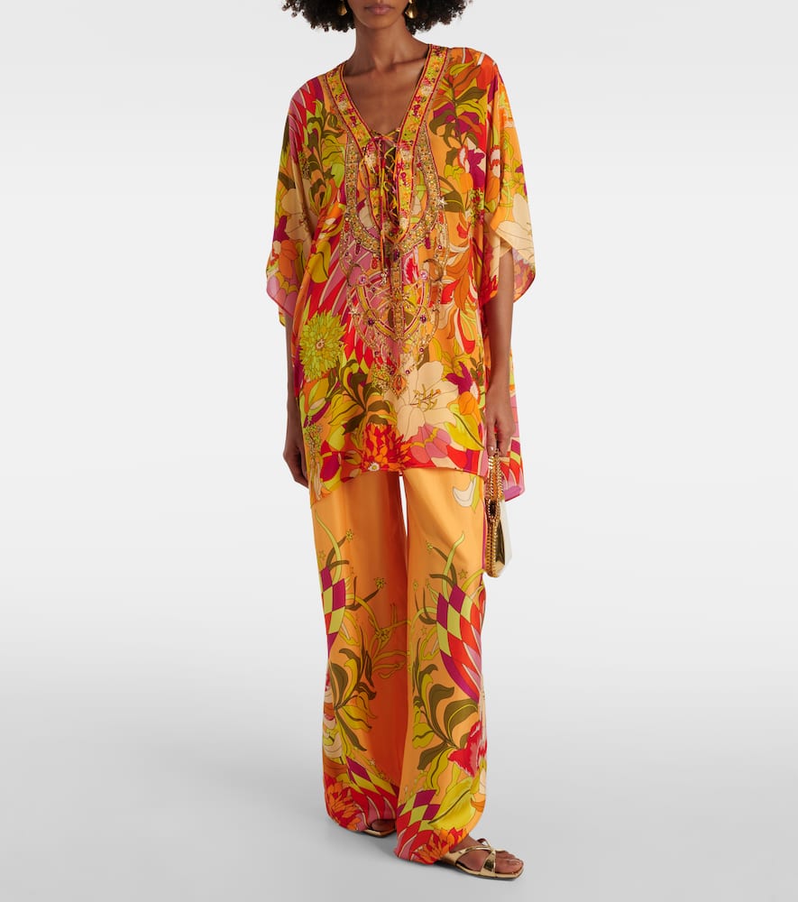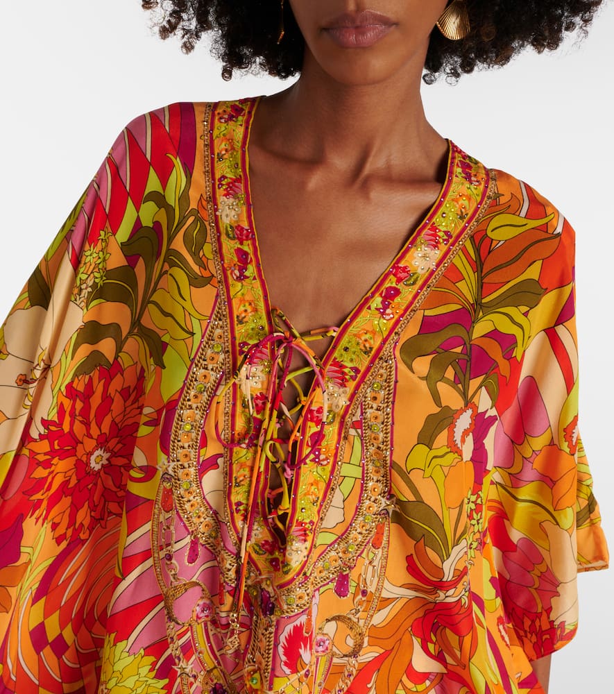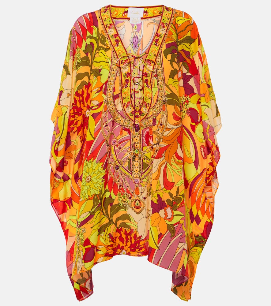 Material: 100% silk. Care instructions: dry clean. Made in India. Designer color name: The Flower Child Society. Closure: self-ties. Shop the latest Camilla Mini Dresses for women.