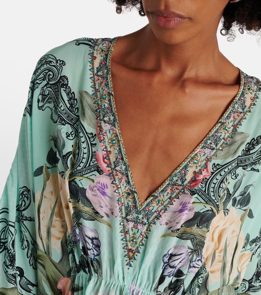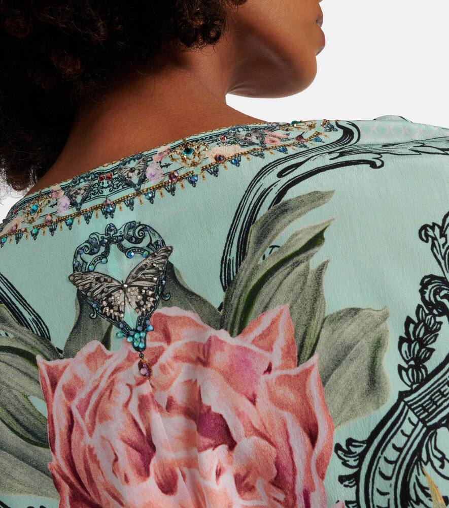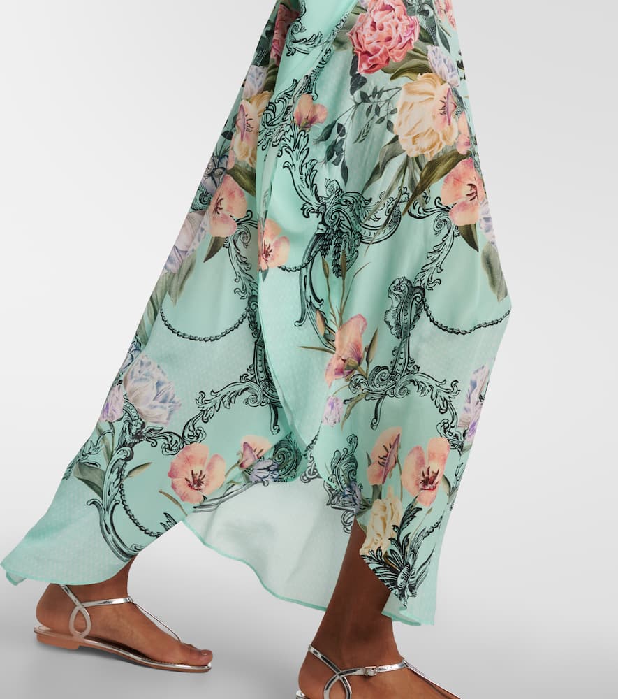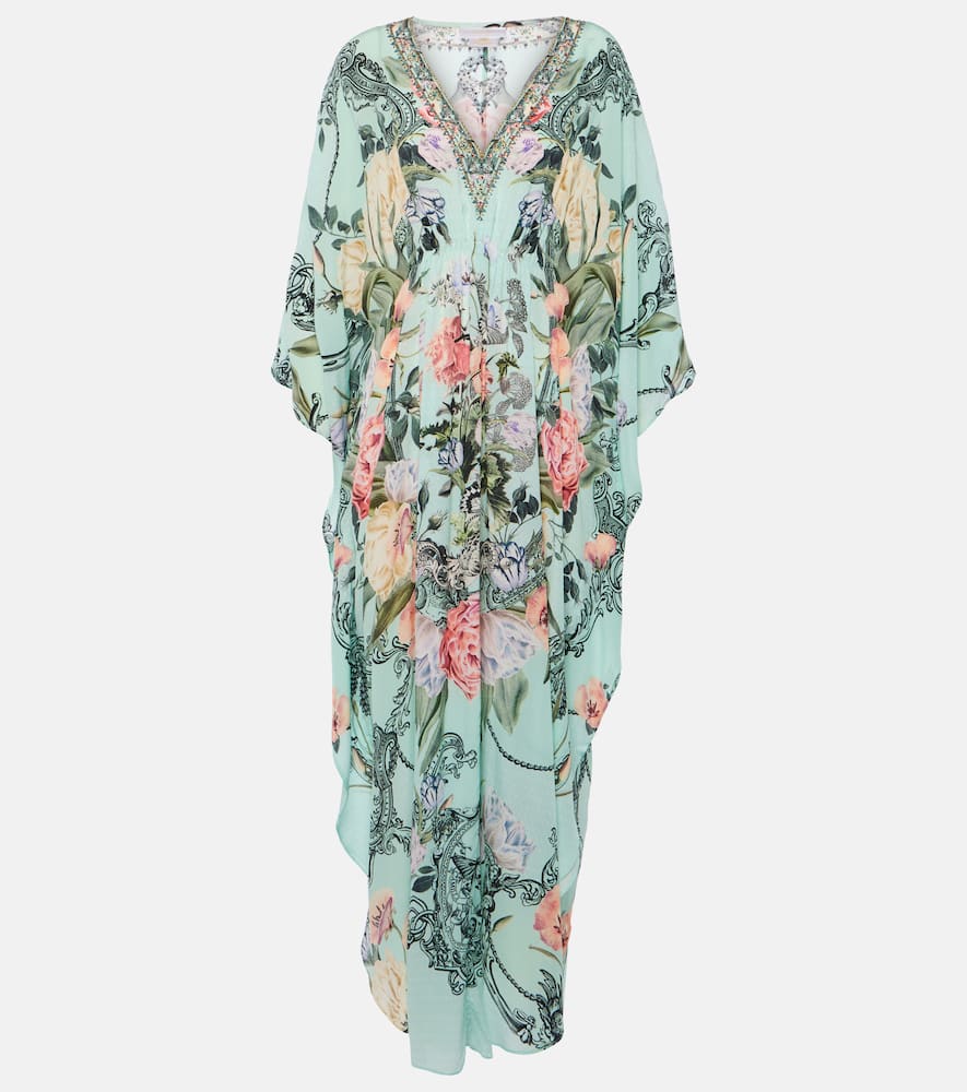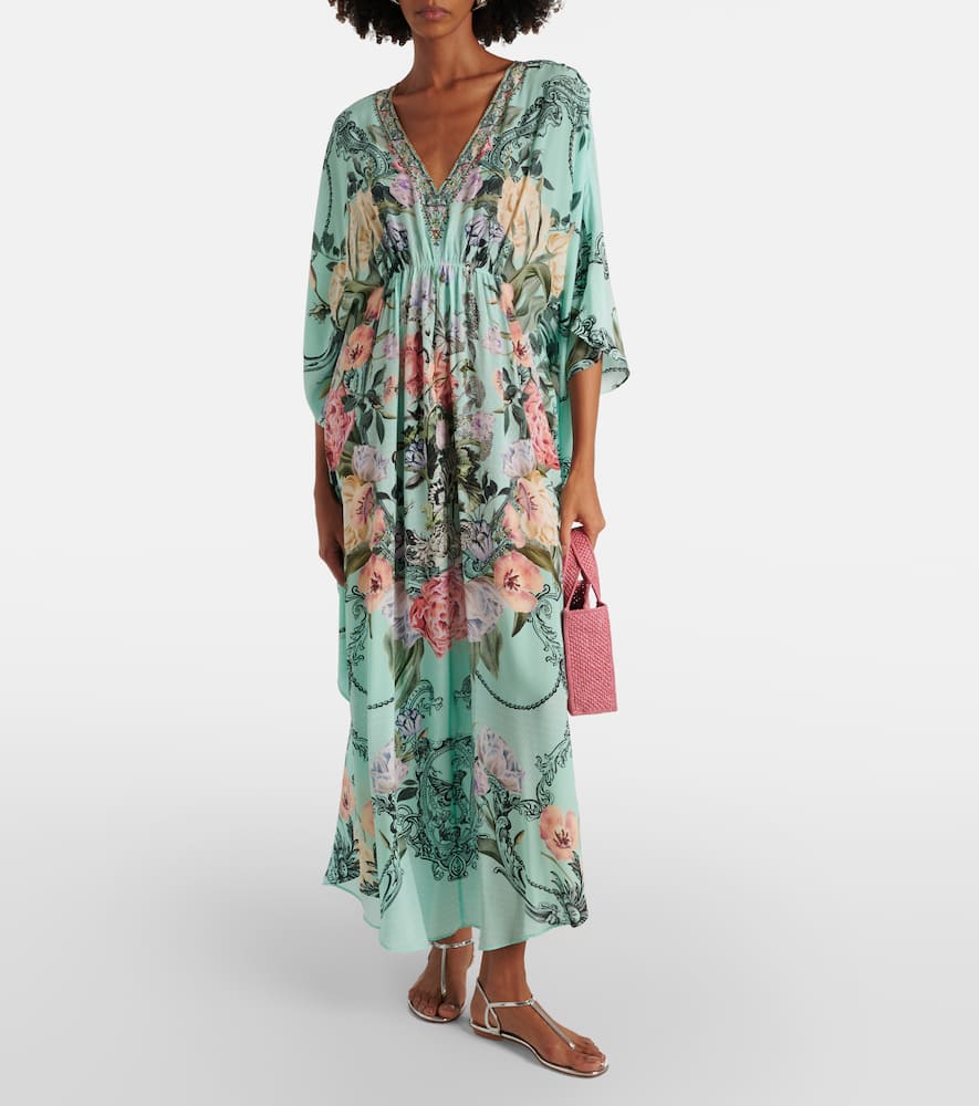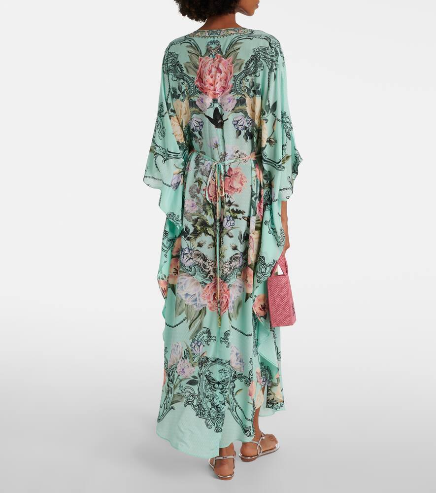 Material: 100% silk. Care instructions: dry clean. Made in India. Designer color name: Petal Promise Land. Closure: self-ties. Shop the latest Camilla Maxi Dresses for women.