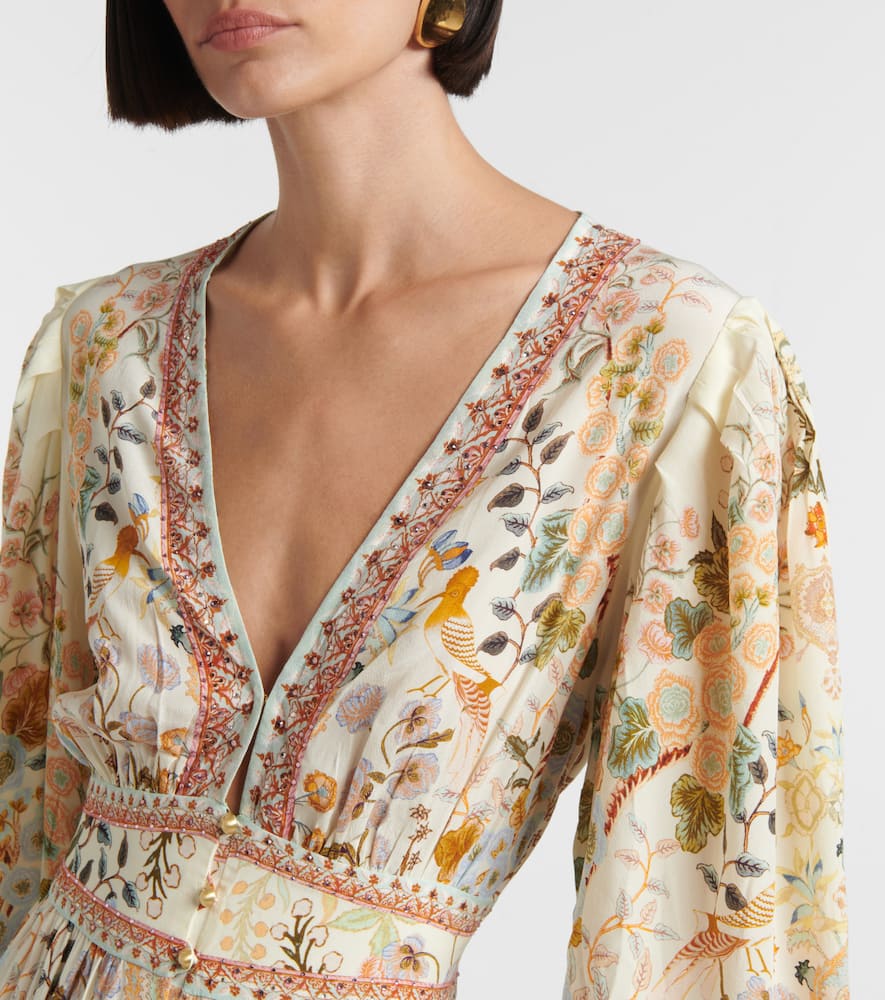 Material: 100% silk. Care instructions: dry clean. Made in India. Designer color name: In Honour of Heirlooms. Closure: partially buttoned front. Cuff: four buttons. Shop the latest Camilla Maxi Dresses for women.