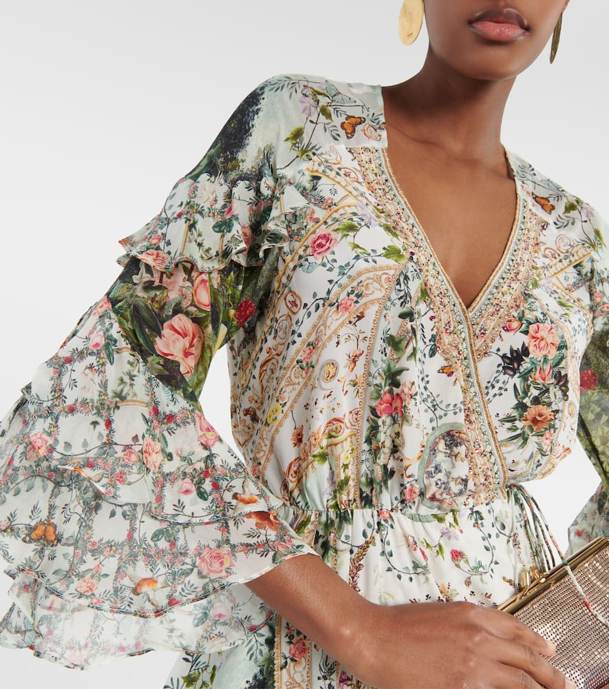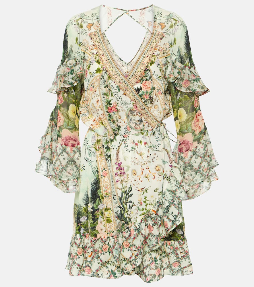 Material: 100% silk. Care instructions: dry clean. Made in India. Designer color name: Renaissance Romance . Closure: self-ties. Shop the latest Camilla Mini Dresses for women.