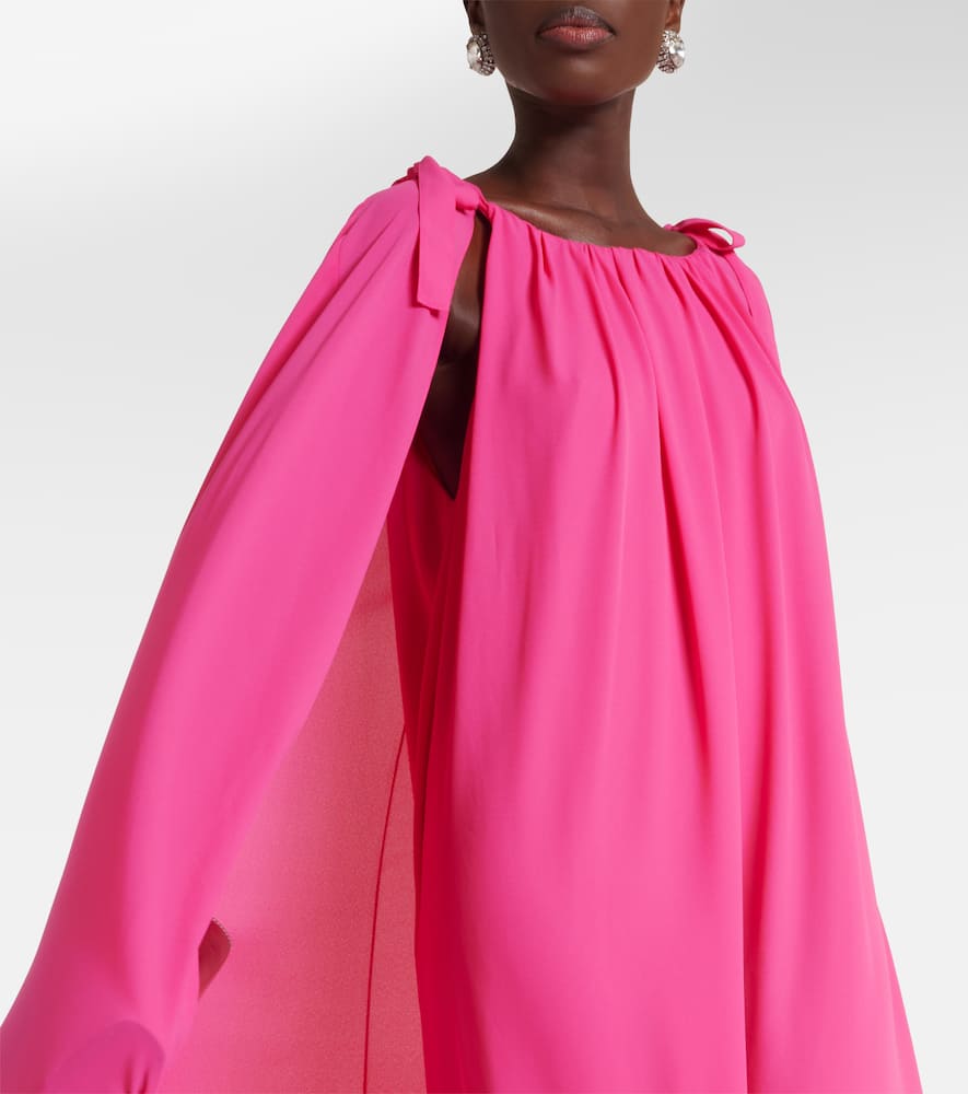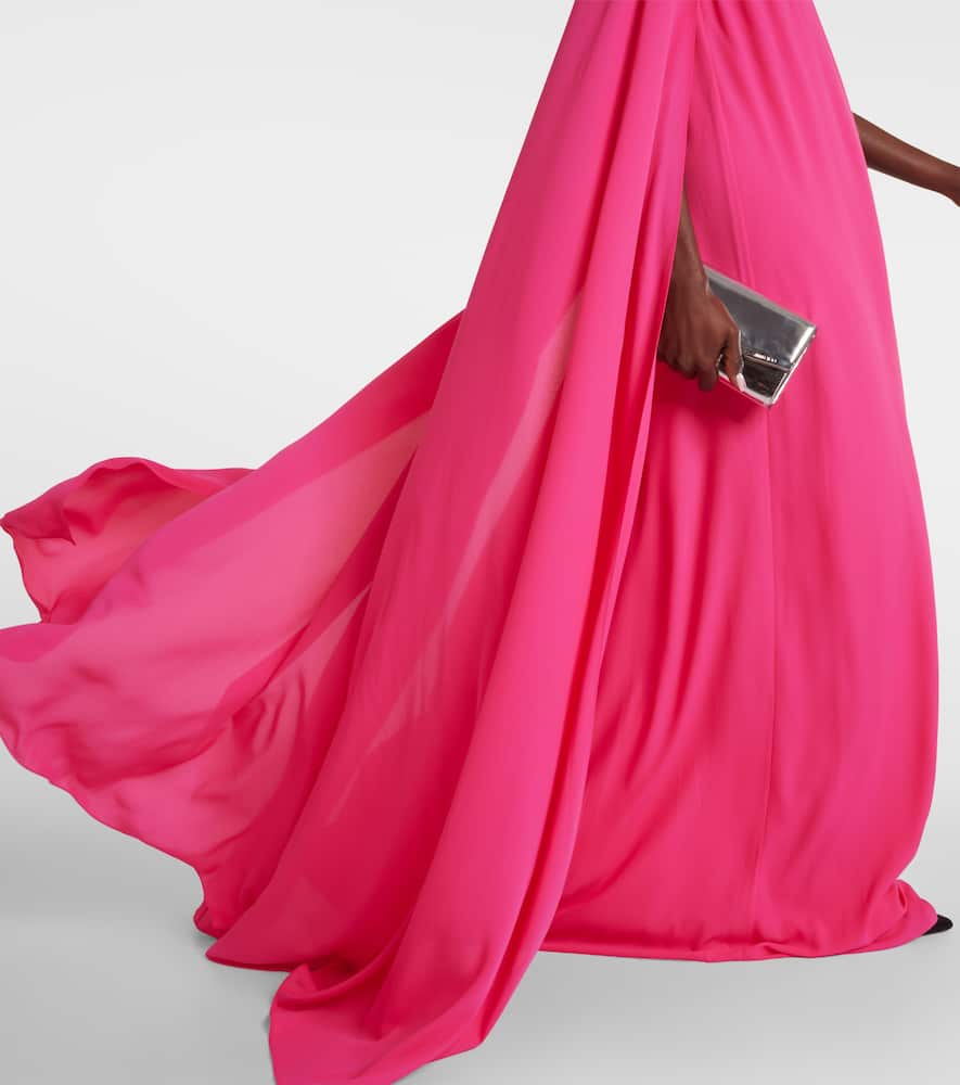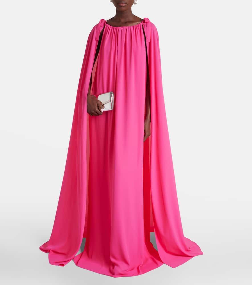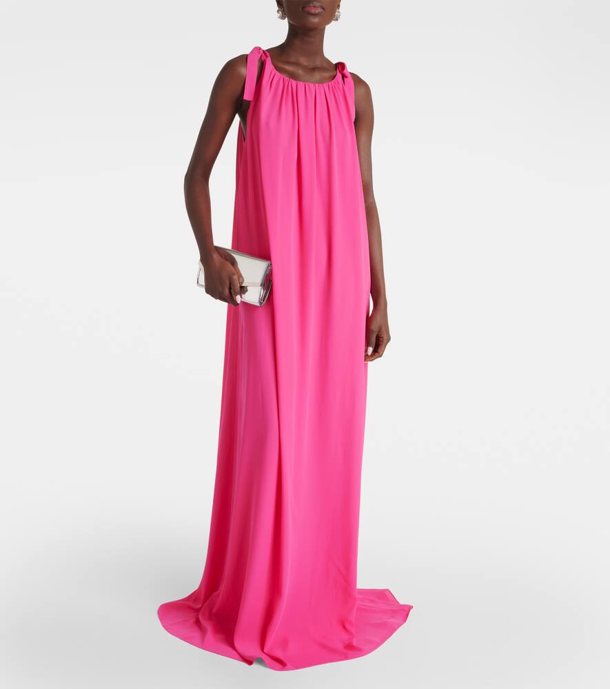 Material: 100% polyester. Care instructions: dry clean. Made in the USA. Designer color name: Begonia. Closure: self-ties, hook fastening. Shop the latest Carolina Herrera Maxi Dresses for women.