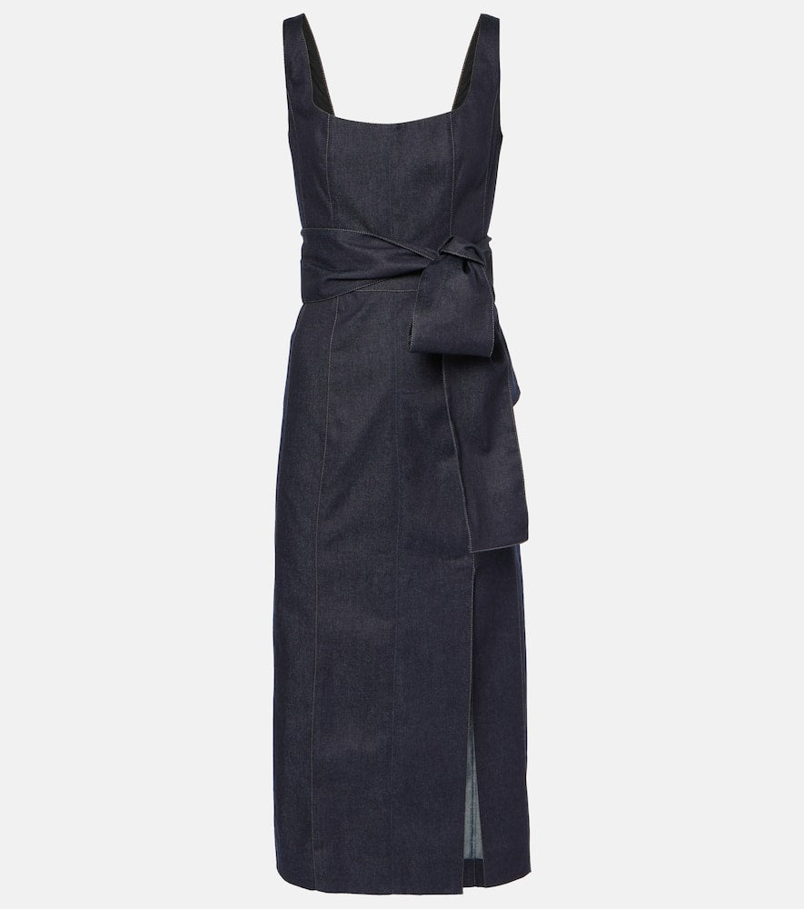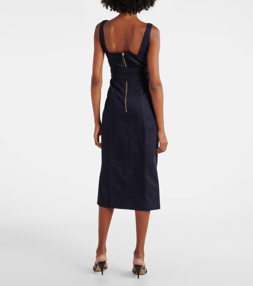 Material: 65% cotton, 33% polyester, 2% elastane. Care instructions: dry clean. Made in Italy. Designer color name: Dark Navy. Closure: zipped back. Shop the latest Carolina Herrera Midi Dresses for women.