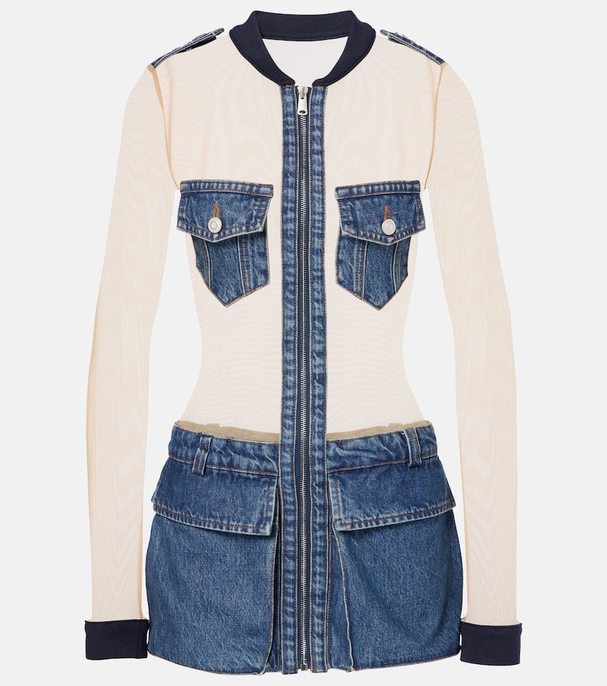 Material: 82% polyamide, 18% elastane. Care instructions: dry clean. Made in Italy. Designer color name: Beige-Blue. Trim: 100% cotton. Closure: zipped front. Pockets: flap chest pockets, flap pockets. Belt loops. Shop the latest Coperni Mini Dresses for women.