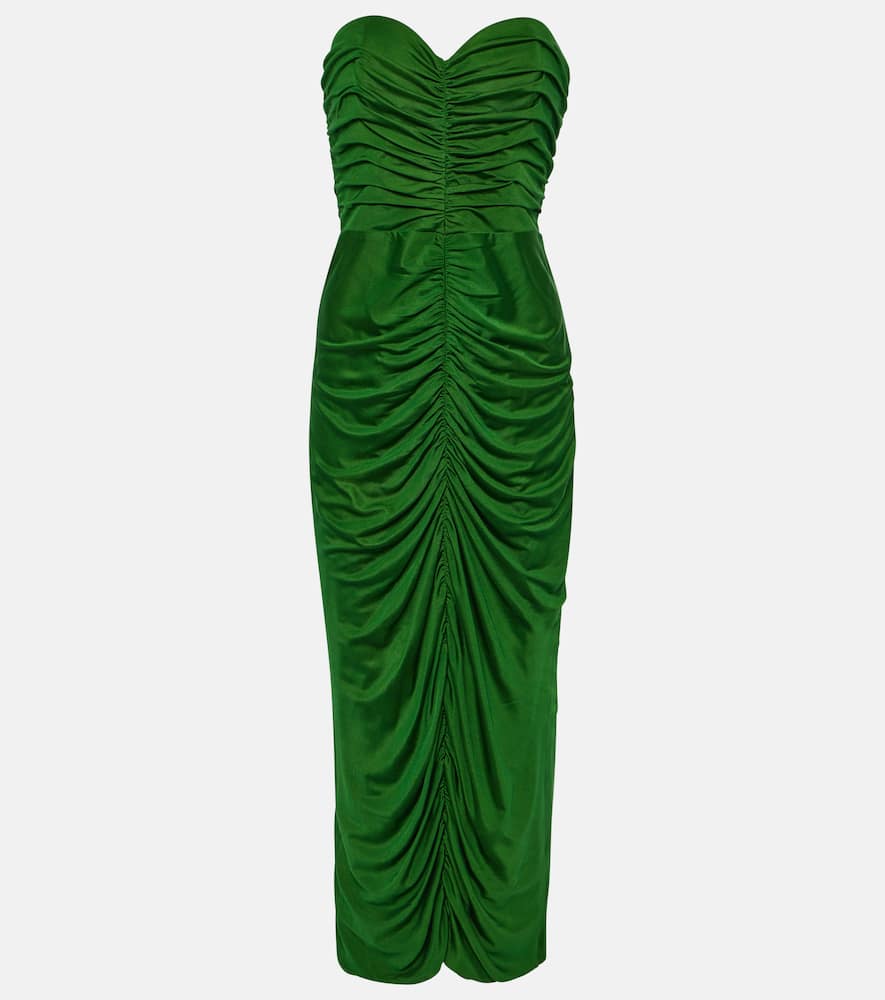 Material: 30% silk, 70% viscose. Care instructions: dry clean. Made in Lithuania. Designer color name: Green. Lining: 100% polyester. Closure: zipped back. Shop the latest Costarellos Midi Dresses for women.