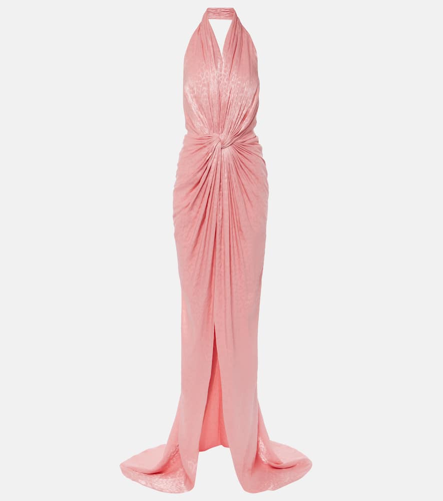 Material: 100% polyester. Care instructions: dry clean. Made in Poland. Designer color name: Cherry Blossom Pink. Closure: concealed zipper, hook fastening. Shop the latest Costarellos Maxi Dresses for women.