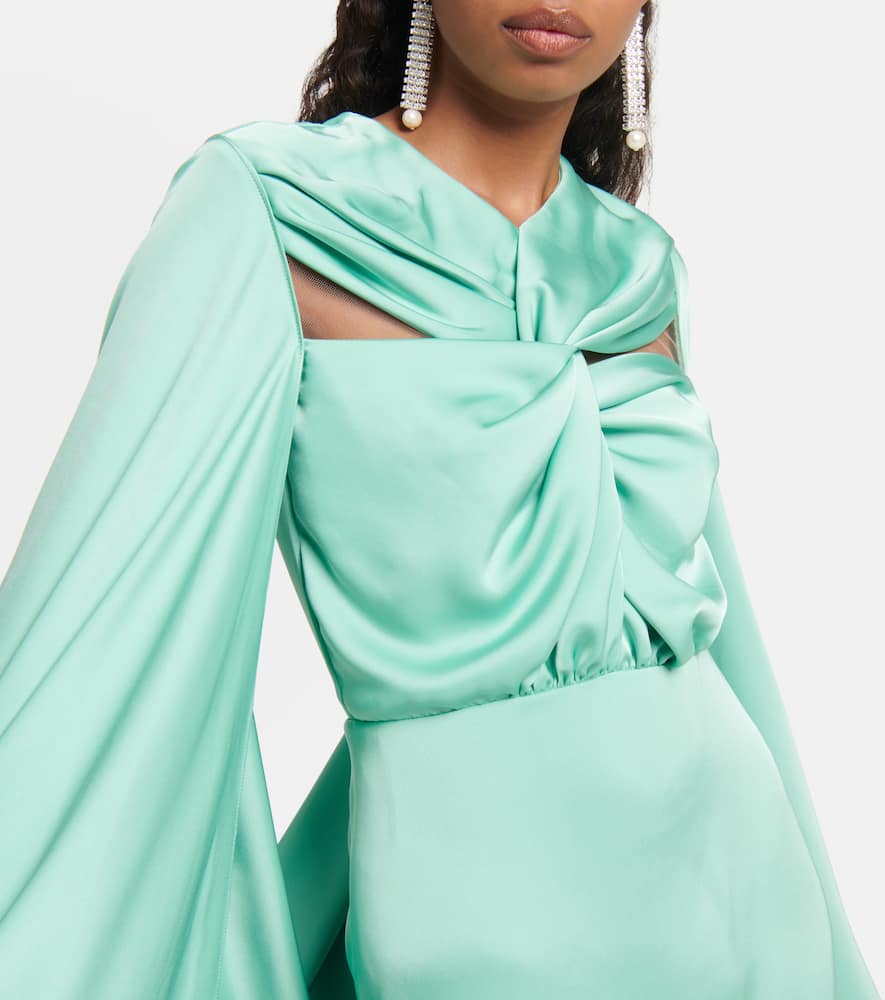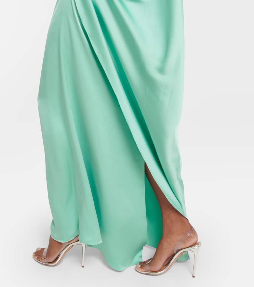 Made in Greece. Closure: zipped back, hook-fastening back. Care instructions: dry clean. Designer color name: Aqua. Material: 100% polyester. Shop the latest Costarellos Maxi Dresses for women.