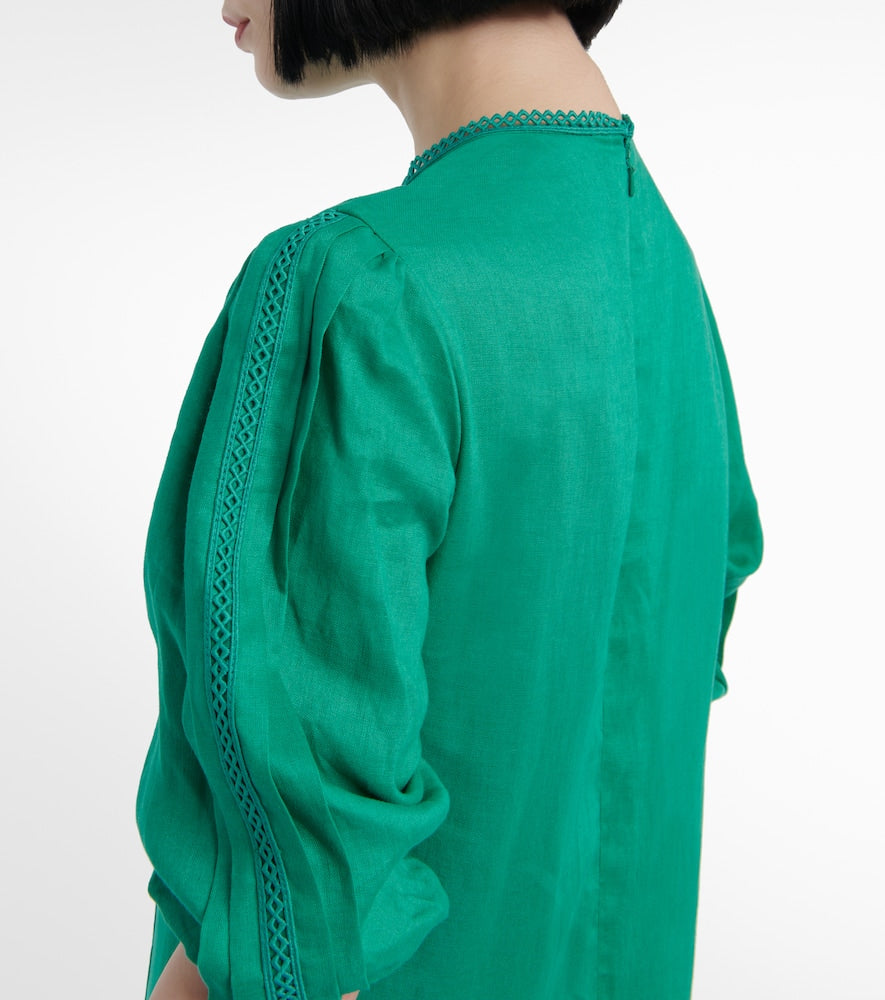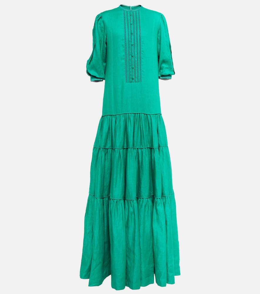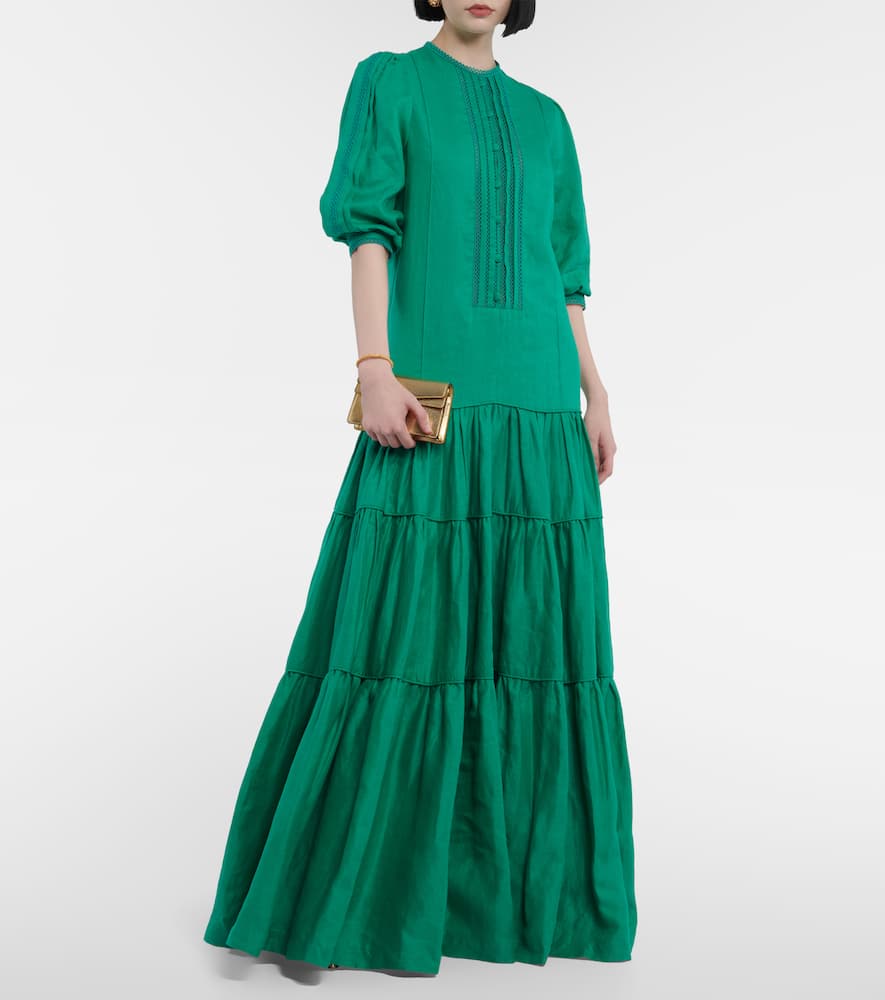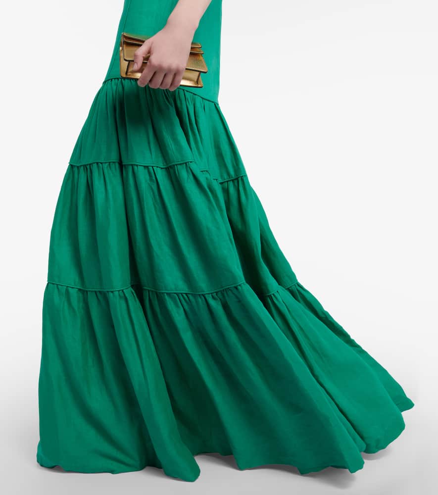 Material II: 100% cotton. Material: 100% linen. Made in Greece. Designer color name: Green. Closure: zipped back. Care instructions: dry clean. Shop the latest Costarellos Maxi Dresses for women.