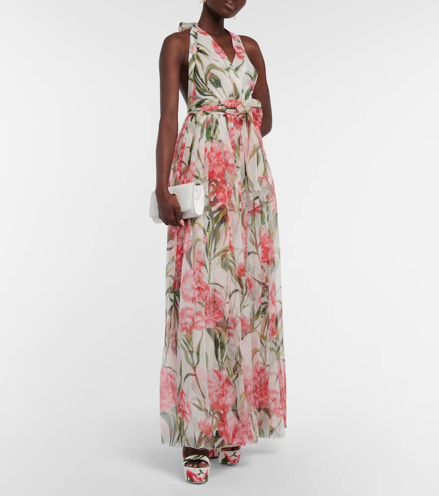 Made in Italy. Material: 100% silk. Closure: zipped back. Designer color name: Garofani New F.Bco. Care instructions: dry clean. Shop the latest Dolce&Gabbana Maxi Dresses for women.