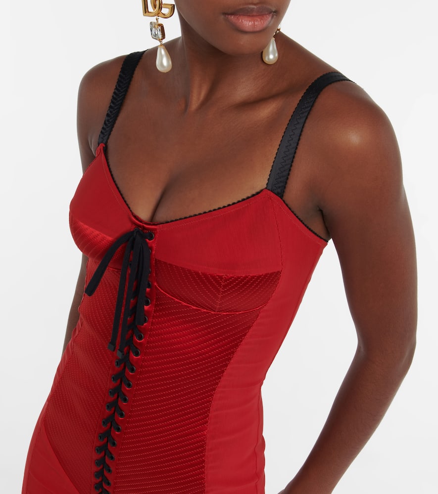Made in Italy. Closure: zipped back. Filling: 100% polyester. Designer color name: Rosso Sangue. Material: 16% elastane, 5% silk, 61% polyamide, 18% acetate. Lining: 21% elastane, 79% polyamide. Care instructions: dry clean. Shop the latest Dolce&Gabbana Midi Dresses for women.