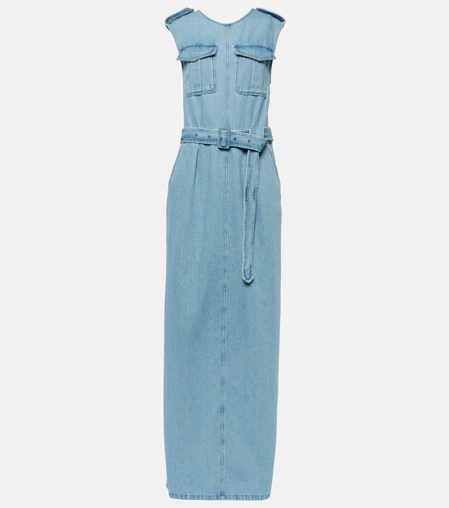 Material: 100% cotton. Care instructions: machine wash at 30 degrees. Made in Italy. Designer color name: Light Blue. Closure: zipped side, invisible zipper. Pockets: flap chest pockets, side slit pockets. Self-tie belt. Detachable belt. Shop the latest Dries Van Noten Maxi Dresses for women.