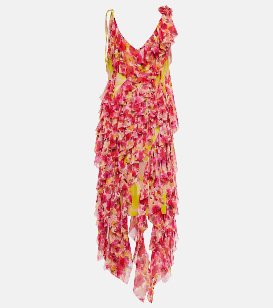 Material: 30% polyester, 70% silk. Care instructions: dry clean. Made in India. Designer color name: Fuchsia. Self-tie shoulder straps. Shop the latest Dries Van Noten Midi Dresses for women.