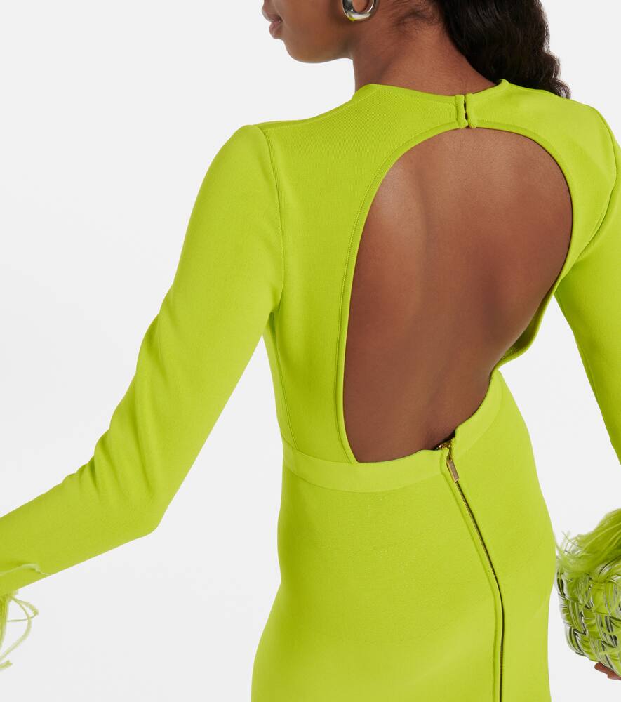 Material: 70% viscose, 20% feathers. Care instructions: specialist clean. Made in Italy. Designer color name: Lime Punch. Closure: zipped back, hook-fastening back. Contains non-textile parts of animal origin. Shop the latest Elie Saab Maxi Dresses for women.