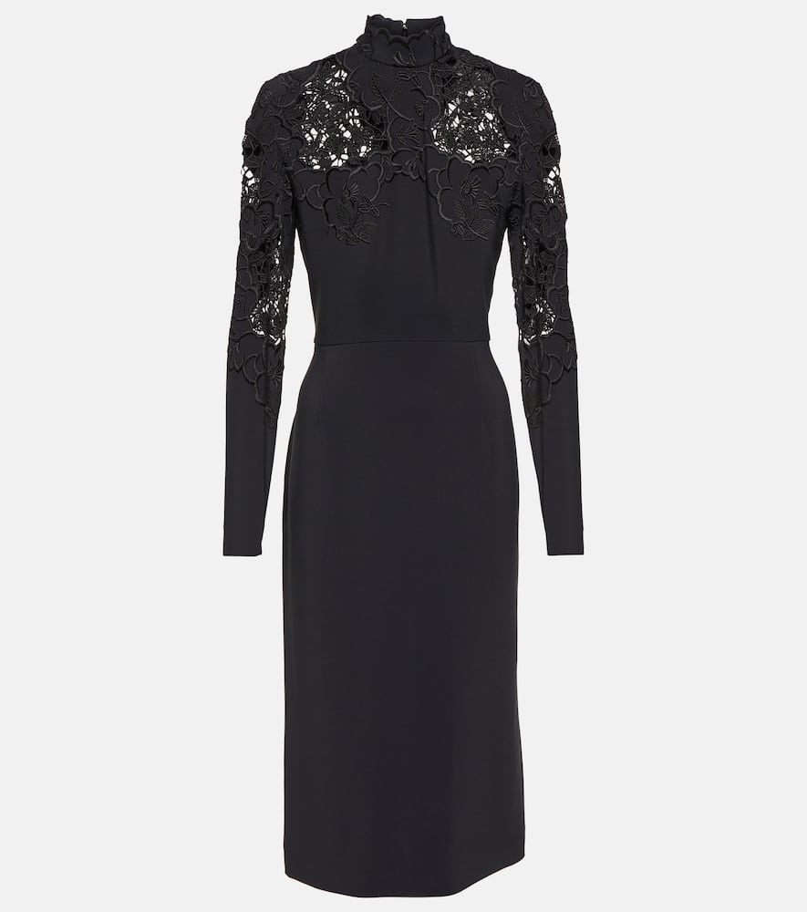Lining: 100% polyester. Material: 50% viscose, 47% acetate, 3% elastane. Made in Italy. Designer color name: Black. Closure: zipped back. Care instructions: dry clean. Shop the latest Elie Saab Midi Dresses for women.