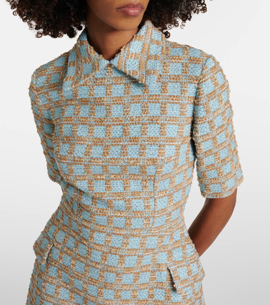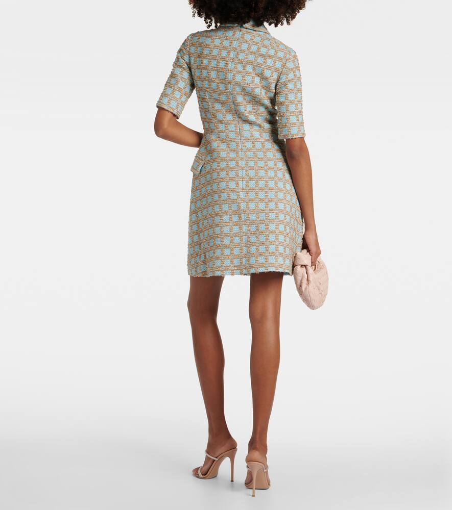 Material: 54% polyester, 26% acrylic, 9% wool, 7% polyamide, 4% cotton. Care instructions: do not wash. Made in the UK. Designer color name: Beige + Blue. Pockets: flap pockets. Collar: classic (Straight point). Closure: invisible zipper. Shop the latest Emilia Wickstead Mini Dresses for women.