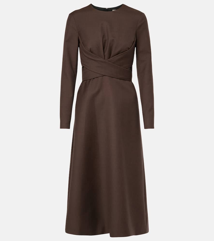 Material: 100% wool. Care instructions: dry clean. Made in the UK. Designer color name: Brown. Lining: 100% polyester. Closure: invisible zipper. Shop the latest Emilia Wickstead Midi Dresses for women.