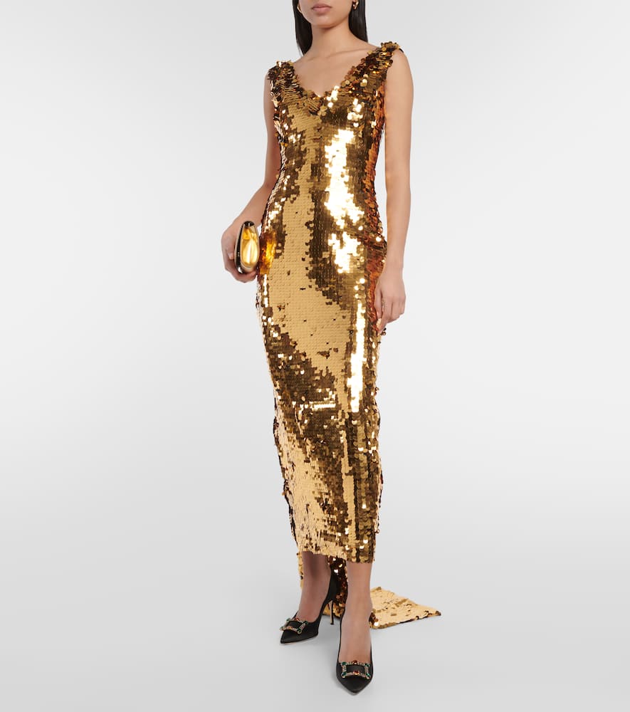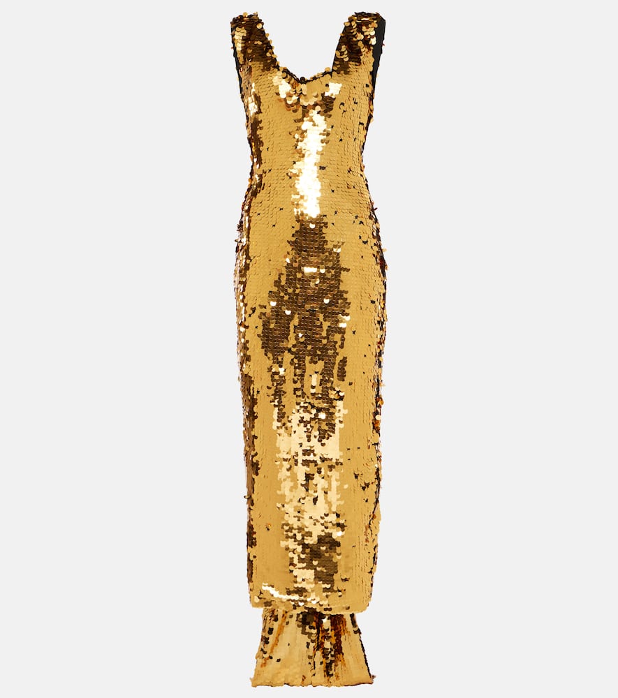 Material: 100% polyester. Care instructions: dry clean. Made in the UK. Designer color name: Gold. Lining: 100% polyester. Shop the latest Emilia Wickstead Maxi Dresses for women.