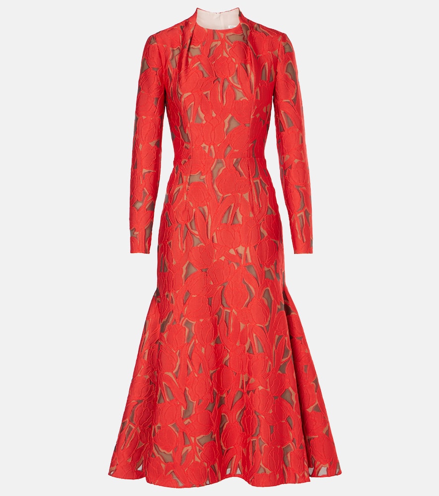 Material: 80% polyester, 11% silk, 9% polyamide. Care instructions: dry clean. Made in the UK. Designer color name: Red. Closure: zipped back. Lining: 100% polyester. Shop the latest Emilia Wickstead Maxi Dresses for women.