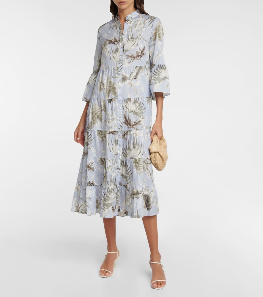 Care instructions: machine wash at 30 degrees. Pockets: side slit pockets. Closure: buttoned front. Designer color name: Wild Palm Blue. Made in Portugal. Material: 100% cotton. Shop the latest Erdem Midi Dresses for women.