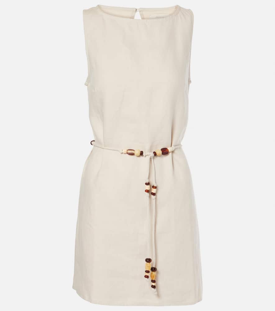 Material: 100% linen. Care instructions: hand wash. Made in Indonesia. Designer color name: Sand. Lining: 100% rayon. Attached belt. Shop the latest Faithfull Mini Dresses for women.