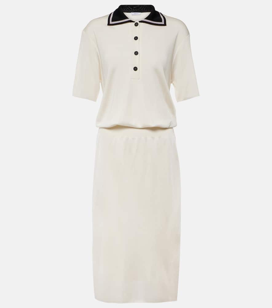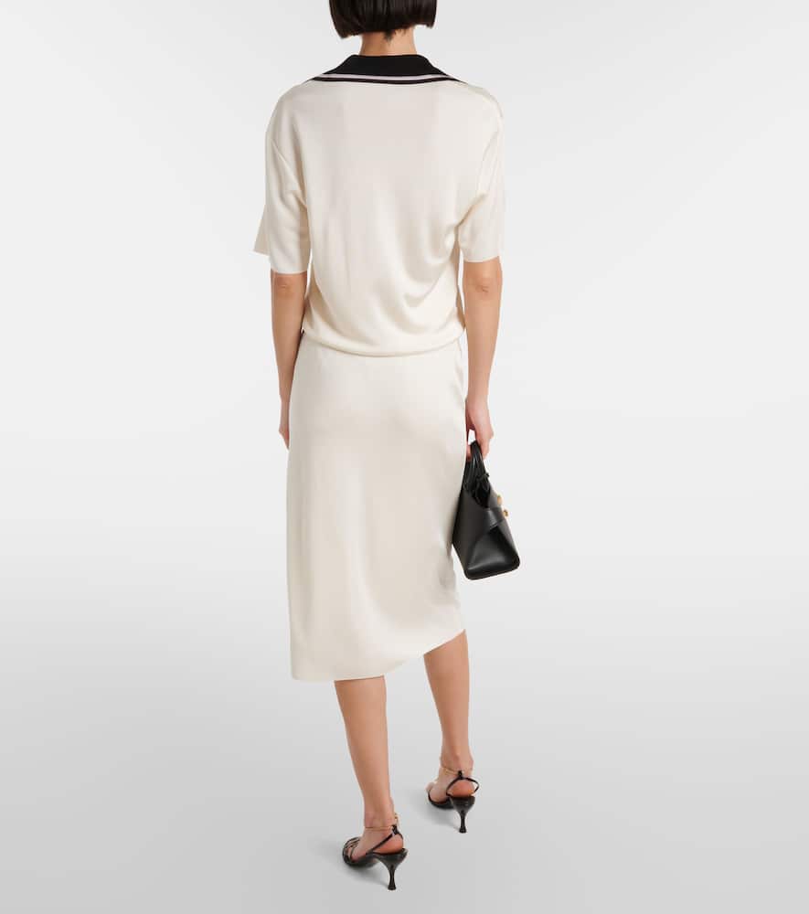 Material: 100% viscose. Care instructions: dry clean. Made in Italy. Designer color name: Mascarpone/Nero. Lining: 100% polyamide. Contains non-textile parts of animal origin. Shop the latest Ferragamo Midi Dresses for women.
