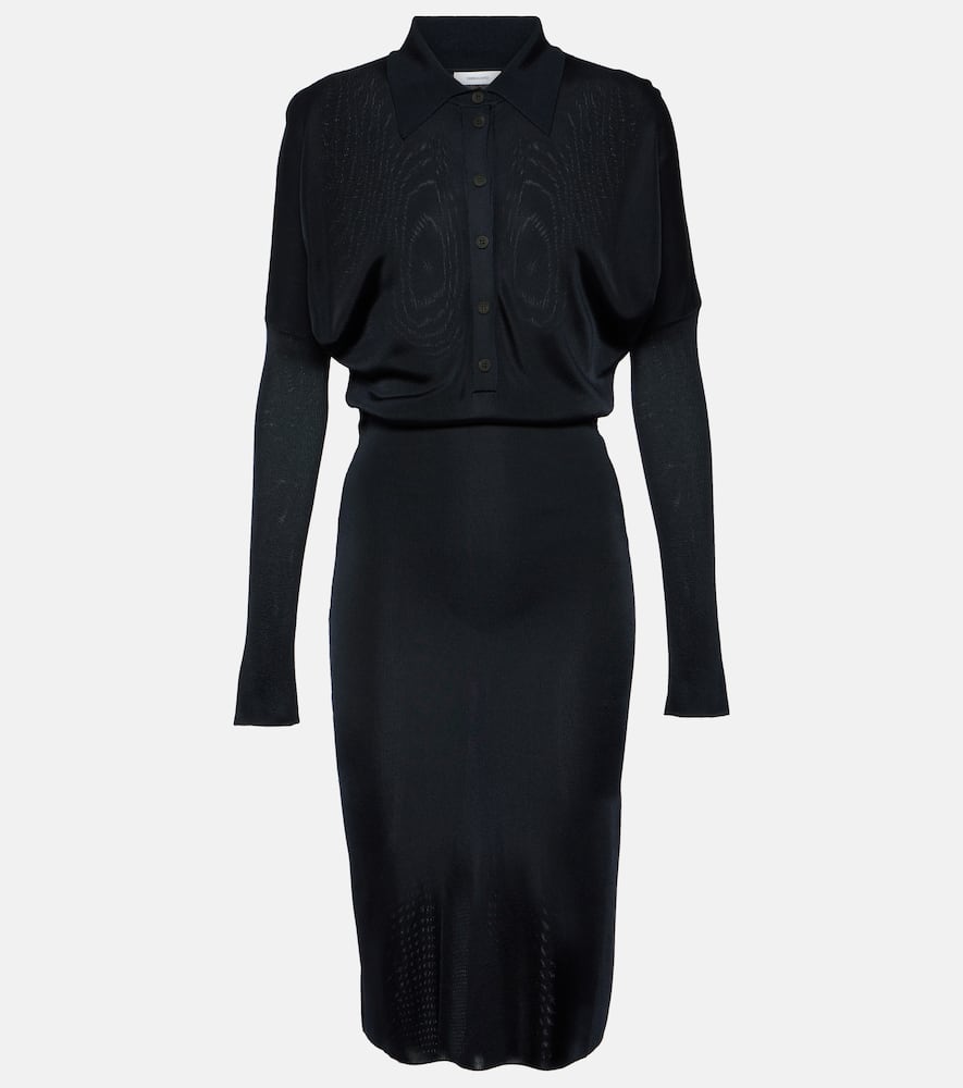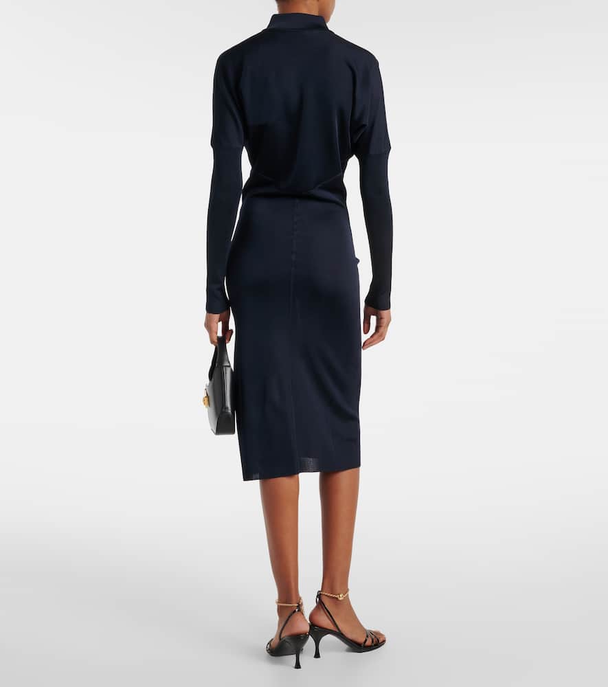 Material: 100% viscose. Care instructions: dry clean. Made in Italy. Designer color name: New Navy. Closure: buttoned front. Shop the latest Ferragamo Midi Dresses for women.