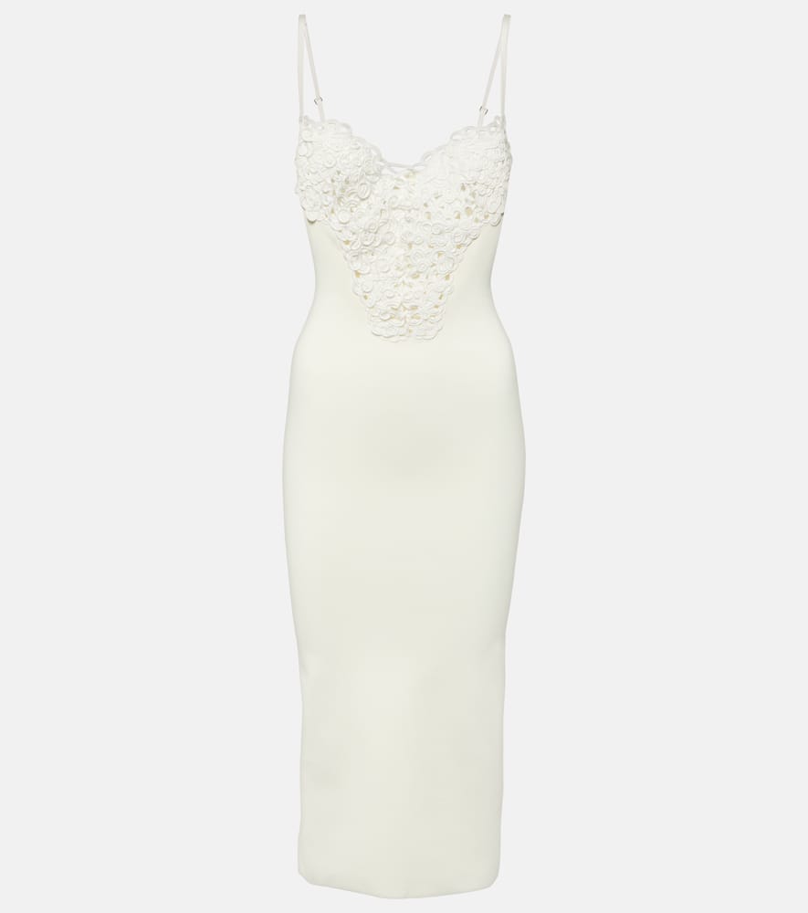 Material: 76% viscose, 16% polyester, 6% polyamide, 2% elastane. Care instructions: specialist clean. Made in Italy. Designer color name: Pearl. Adjustable shoulder straps. Shop the latest Galvan Midi Dresses for women.