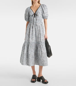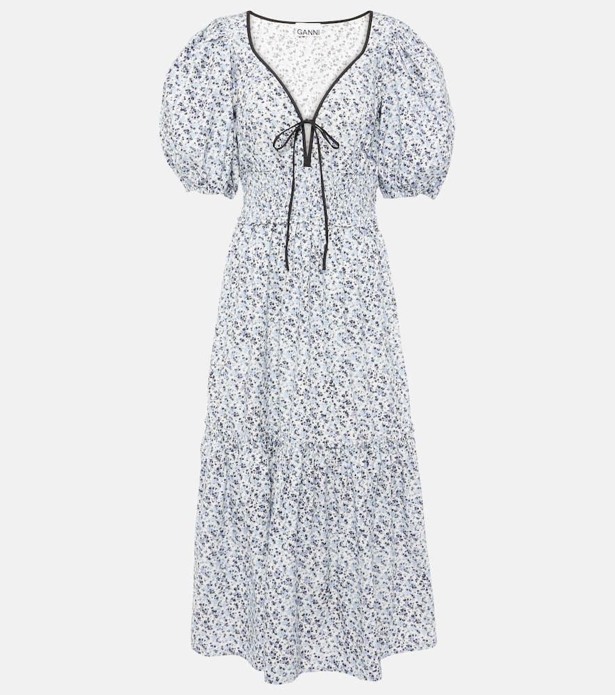 Material: 100% cotton. Care instructions: machine wash at 30 degrees. Made in India. Designer color name: Glacier Lake. Shop the latest Ganni Midi Dresses for women.
