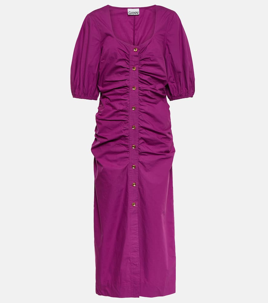 Made in India. Material: 100% cotton. Care instructions: machine wash at 30 degrees. Designer color name: Purple Wine. Shop the latest Ganni Midi Dresses for women.