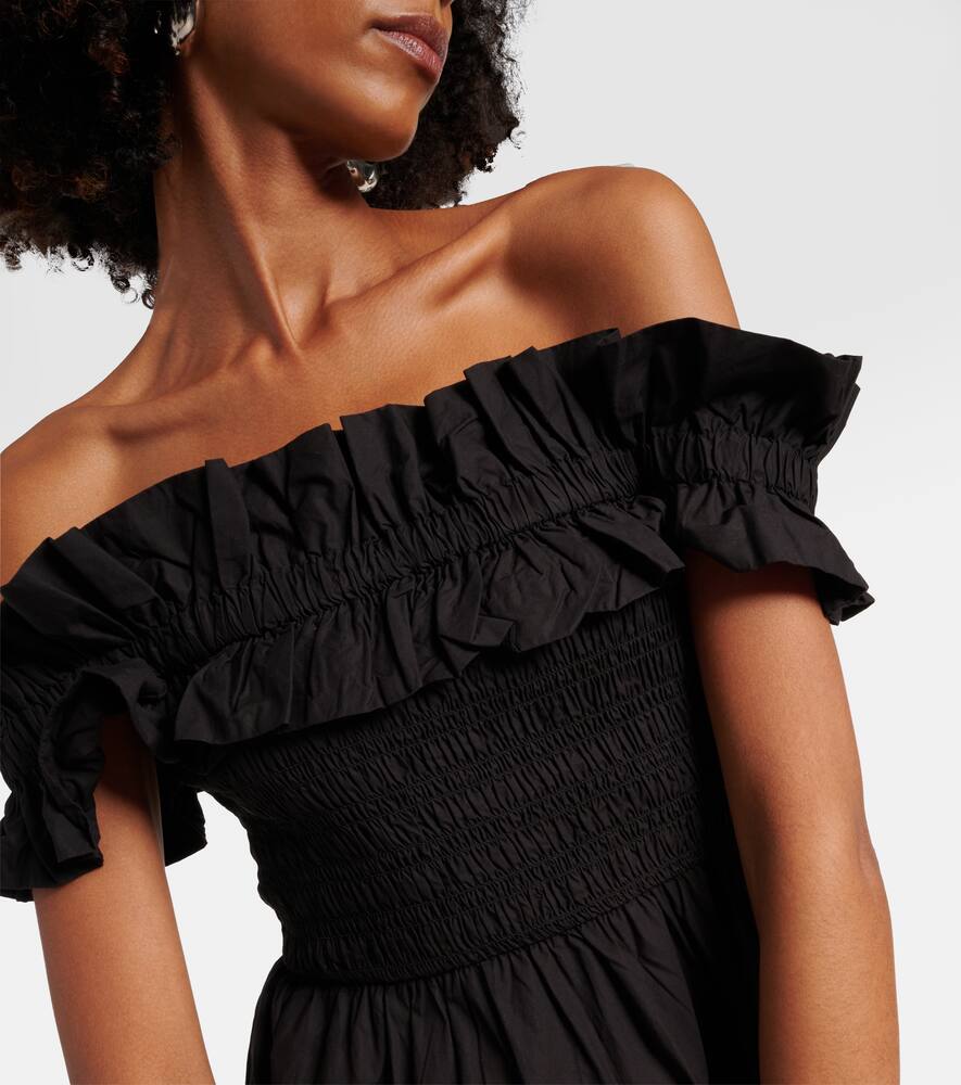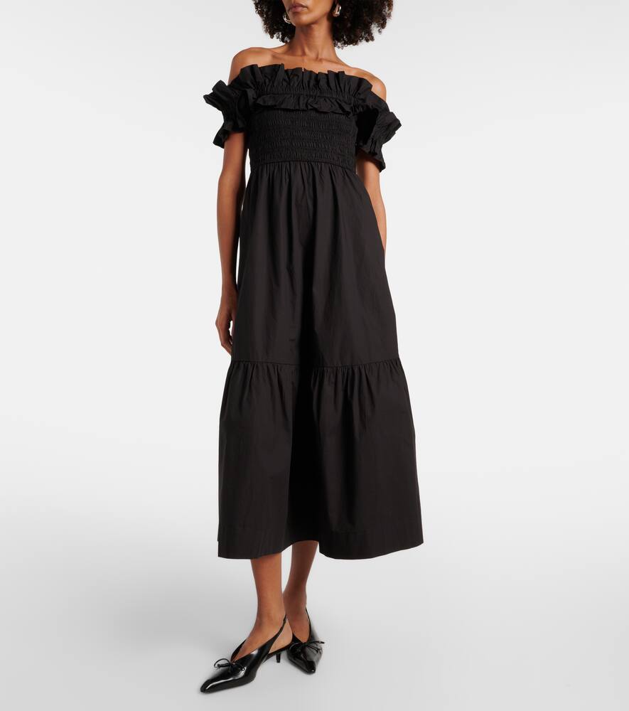 Material: 100% cotton. Care instructions: machine wash at 30 degrees. Made in India. Designer color name: Black. Shop the latest Ganni Midi Dresses for women.
