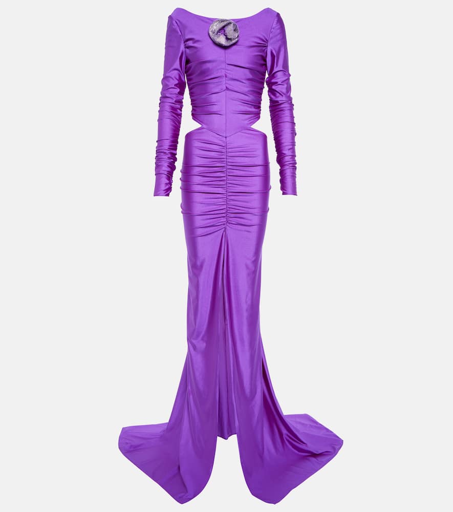 Material: 88% polyamide, 12% elastane. Care instructions: dry clean. Made in Italy. Designer color name: Purple. Shop the latest Giuseppe di Morabito Maxi Dresses for women.
