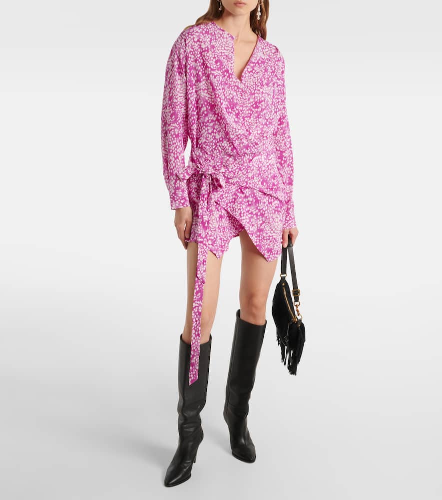 Material: 91% silk, 9% elastane. Care instructions: dry clean. Made in Romania. Designer color name: Fuchsia/White. Shop the latest Isabel Marant Mini Dresses for women.