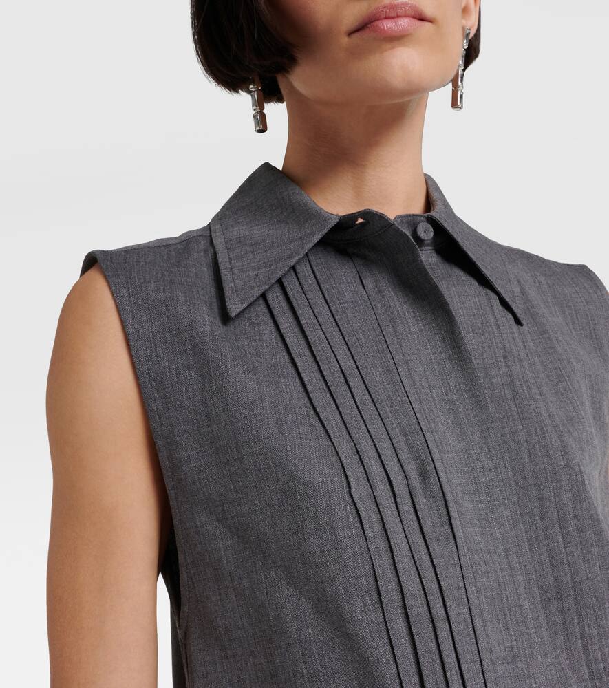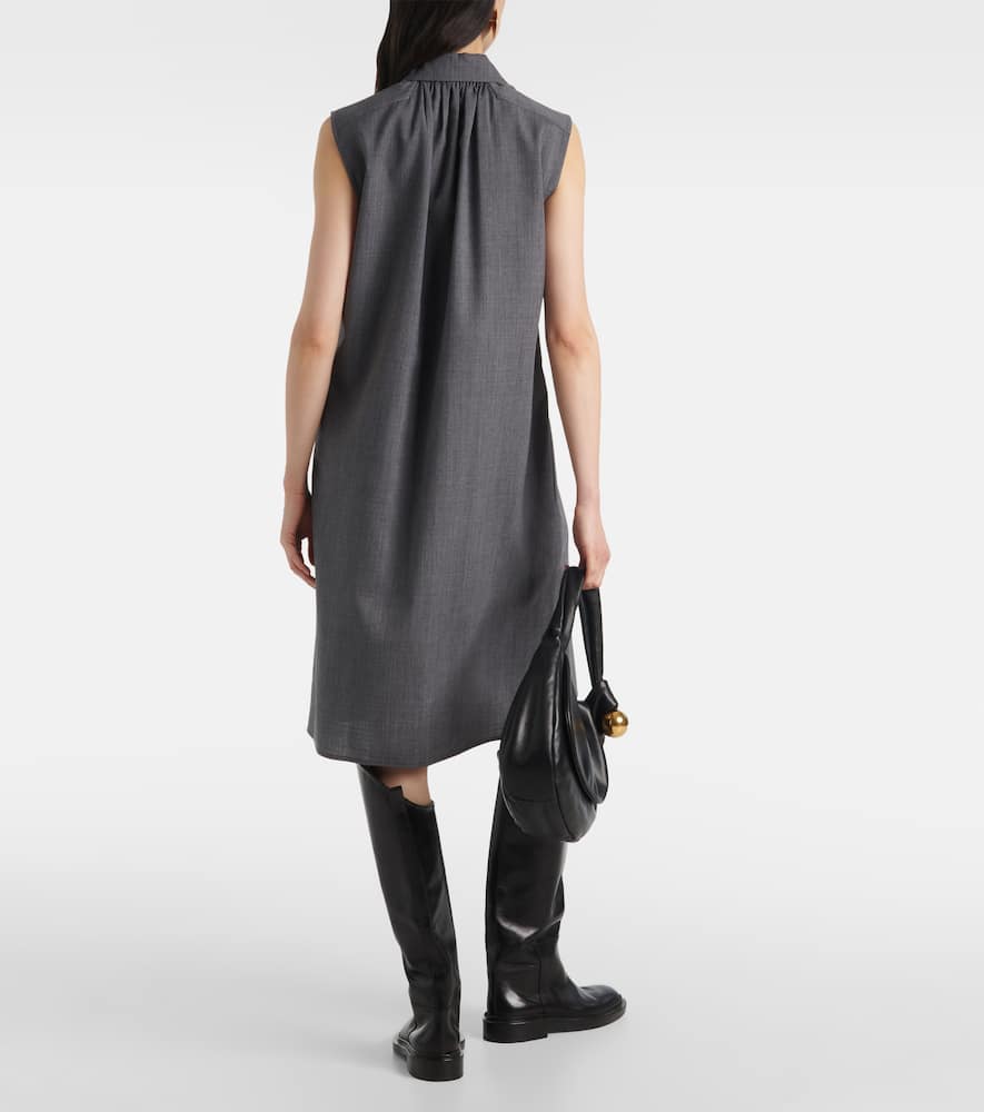 Material: 100% wool. Care instructions: dry clean. Made in Italy. Designer color name: Volcanic Glass. Closure: partially buttoned front. Pockets: side slit pockets. Shop the latest Jil Sander Mini Dresses for women.
